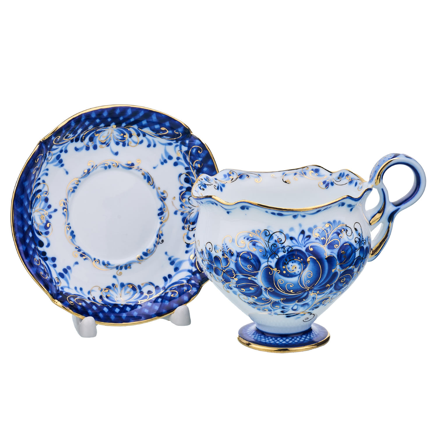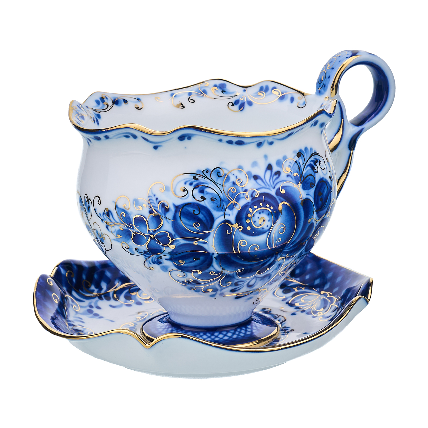 Чайная пара с росписью "Ландыш". Гжель в золоте