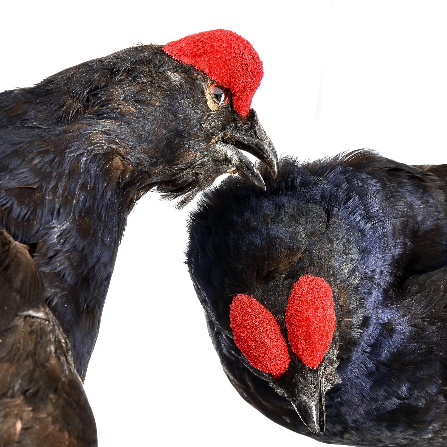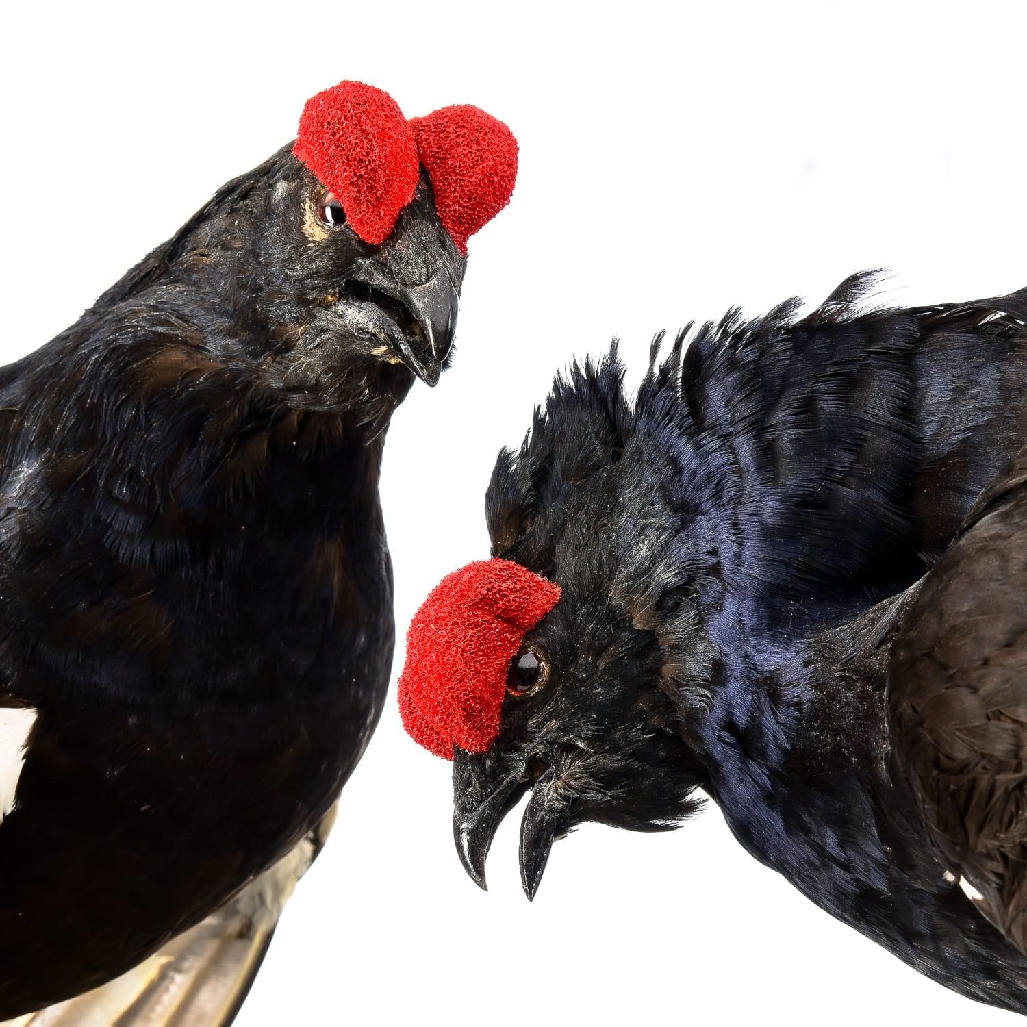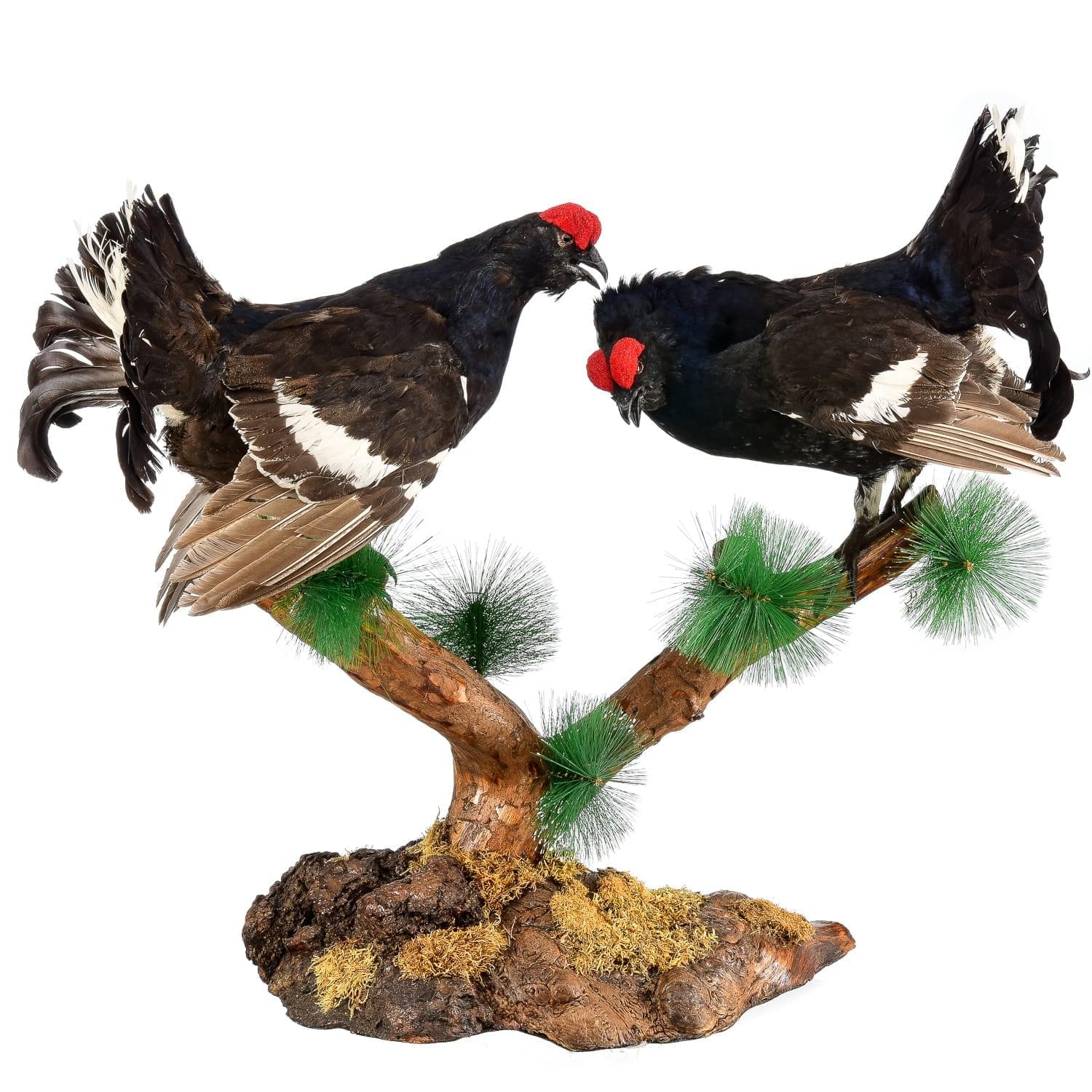 0015401 Таксидермия Чучело ДВА ТЕТЕРЕВА НА ВЕТКЕ напольное/настольное .
