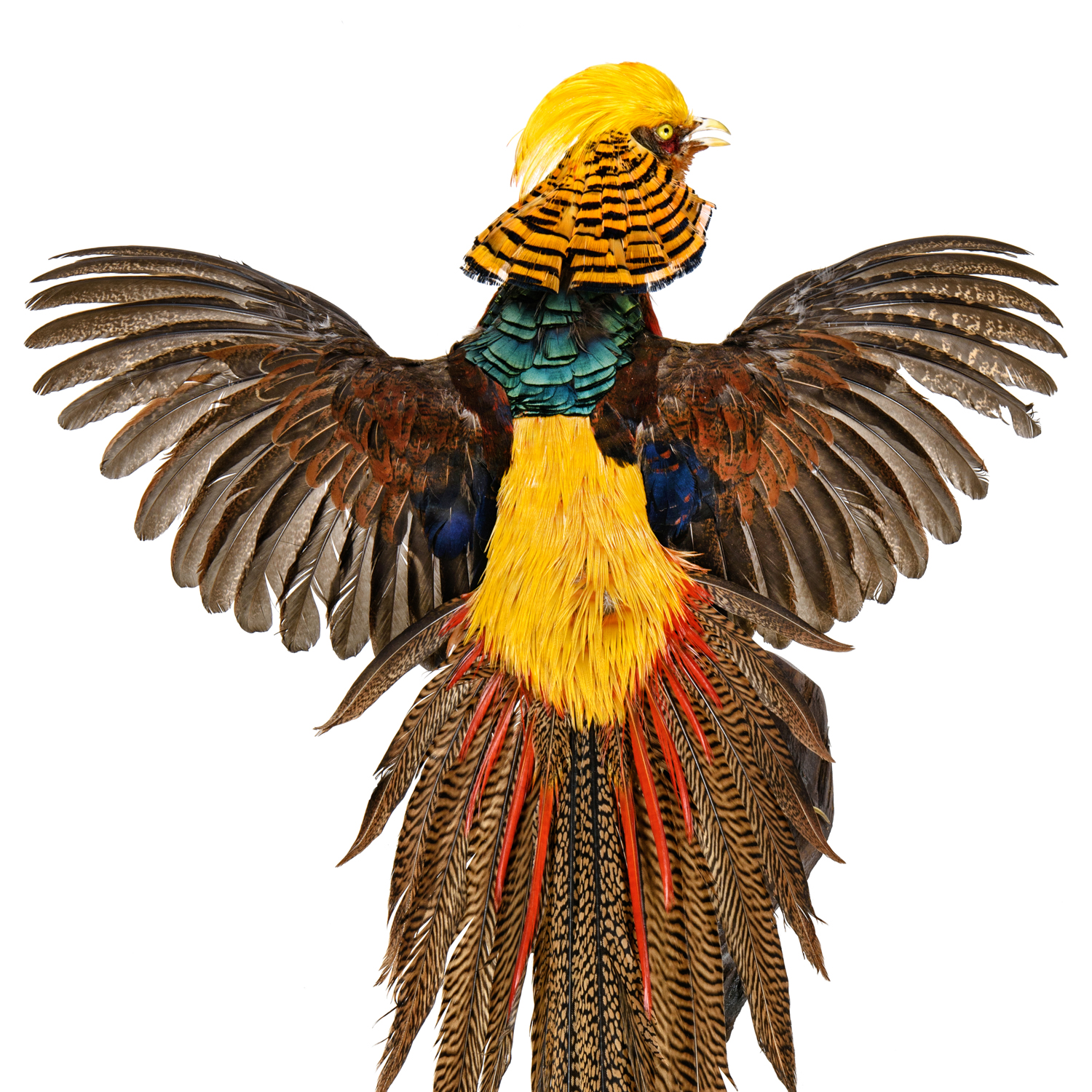 0060279/кр.распахнуты Таксидермия Чучело "Фазан Золотой" настенное .