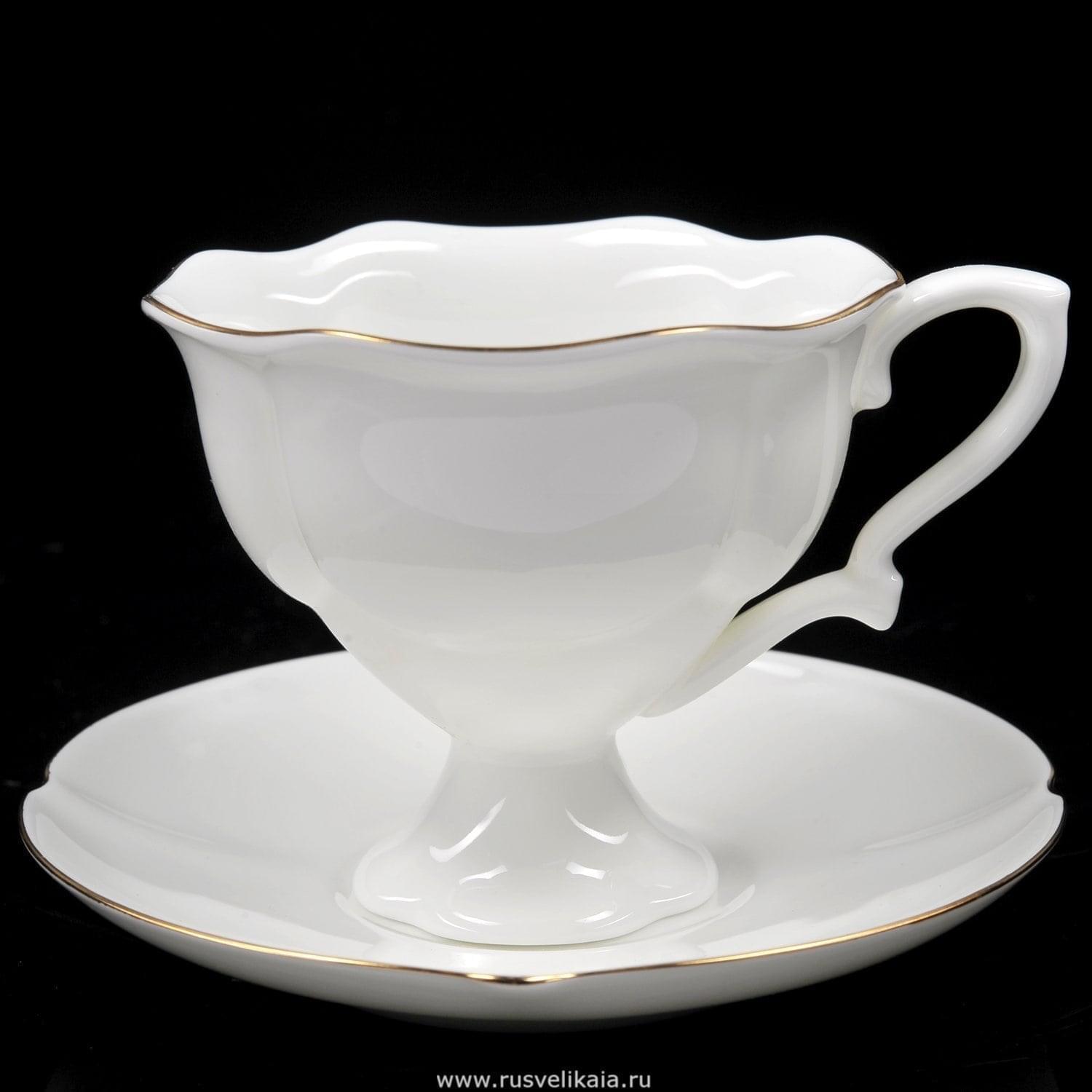 Чашка с блюдцем изготовлена на Императорском фарфоровом заводе из костяного фарфора. Форма отливается вручную. Для декорирования используется отводка золотом. Форма «Наташа» создана Троицким Юрием Федоровичем в 1988 году, это его первая работа в качестве скульптора. Он хотел сделать подарок дочери Наталье, выполнить чашку сложной, изящной по форме, на ножке. Изделие представили на художественном совете, где его приняли под аплодисменты. Пришлось продолжить работу и Юрий Троицкий принялся за создание сервиза «Наташа», который был готов к 1995 году. Он выпускается на ИФЗ свыше 22 лет и пользуется особым спросом. Троицкий Юрий Федорович, модельщик керамического производства высокохудожественных изделий высшей категории ИФЗ, создал знаменитые формы, в частности, Наташа и Купольная. Диаметр блюдца - 12.2 см. Год начала выпуска - 2011. Объем чашки - 120 мл. Вес - 175 г. Высота блюдца - 1.9 см. Высота чашки - 7.3 см. ....