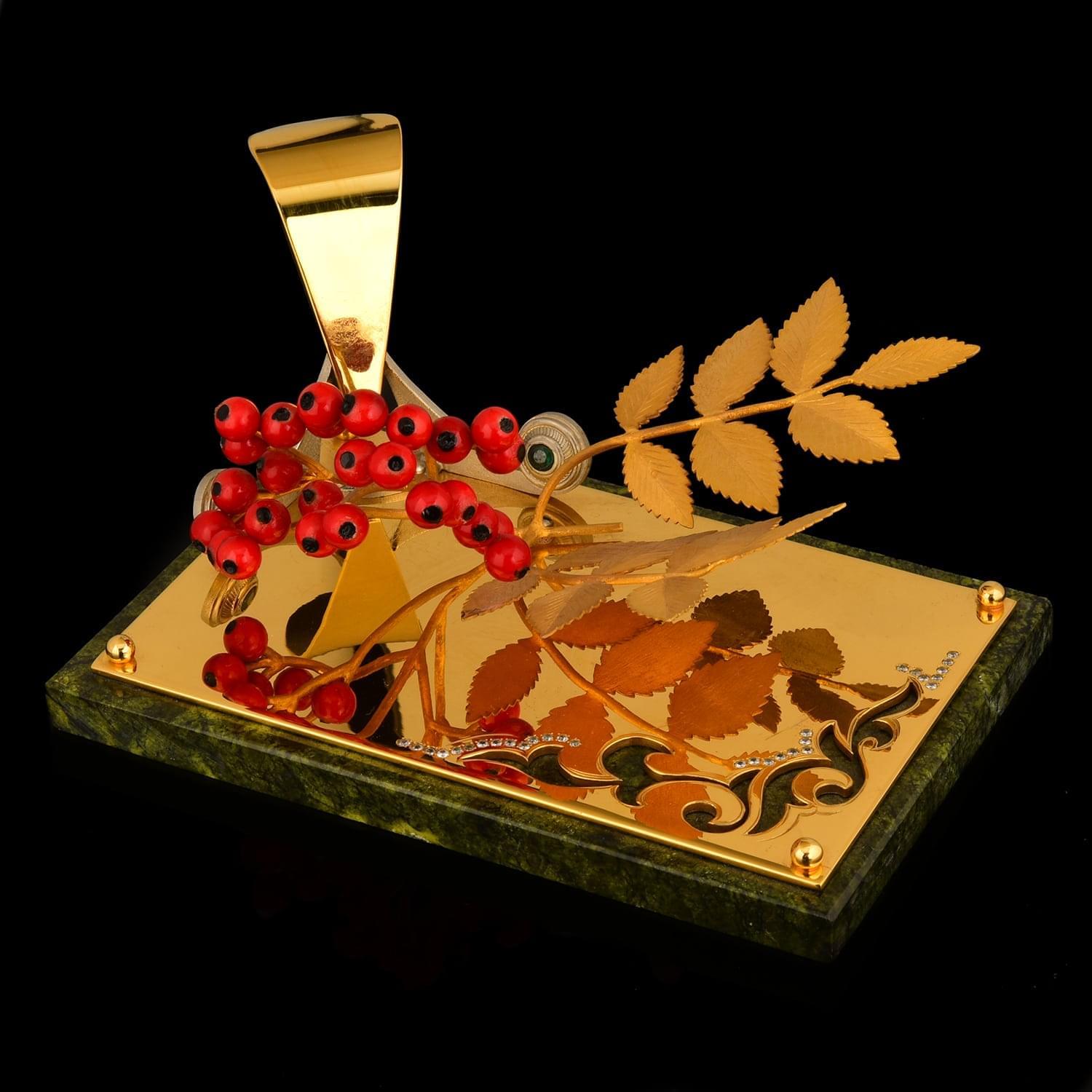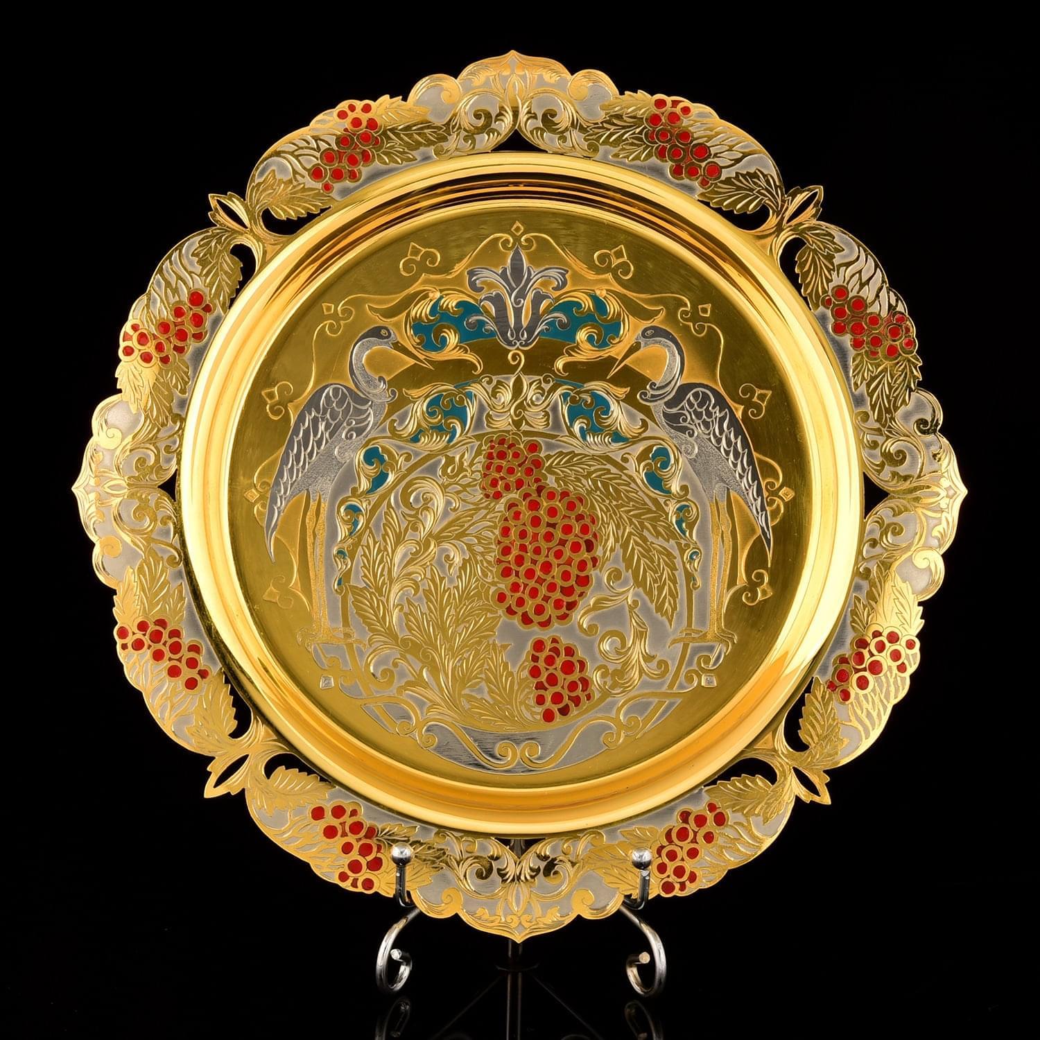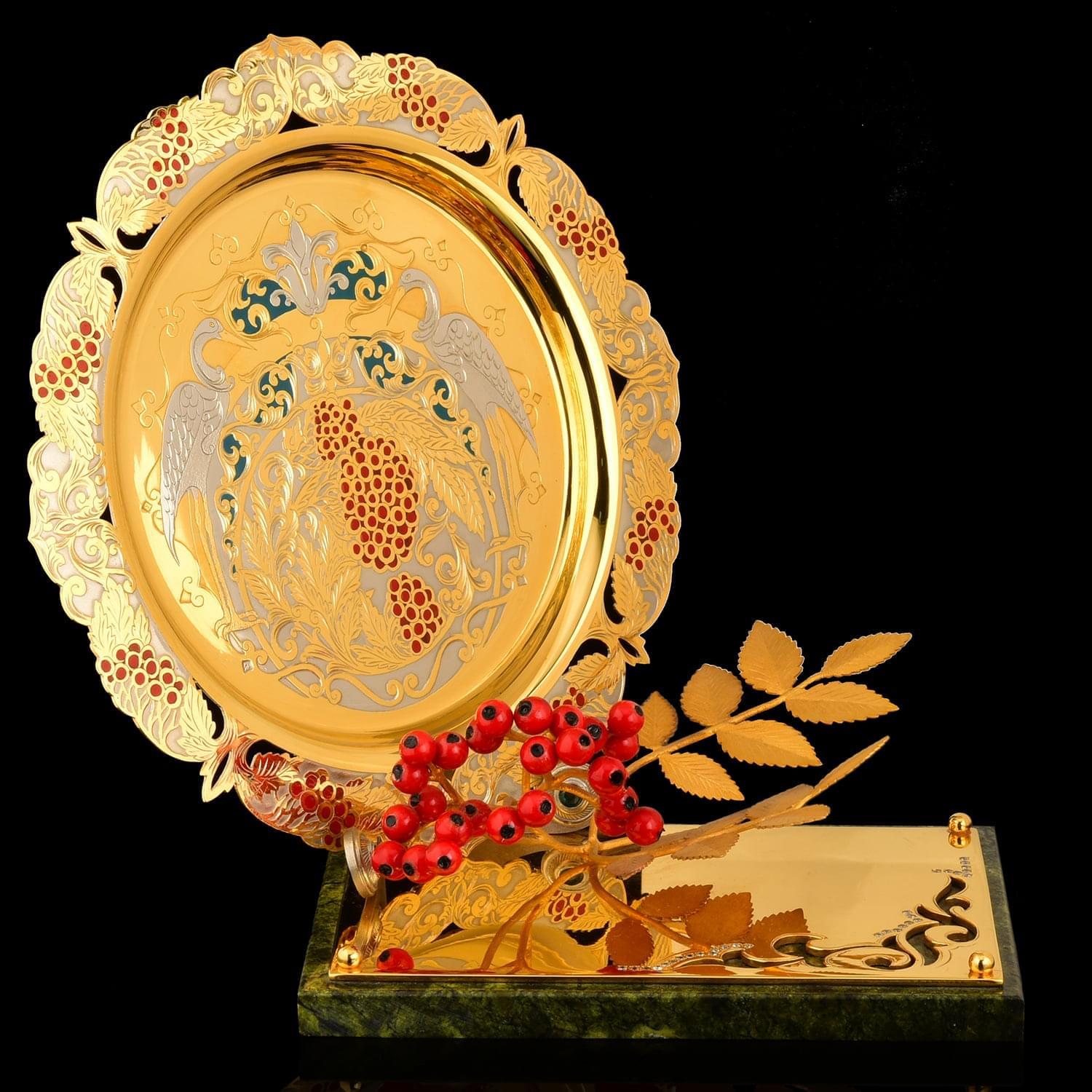 Русские подарки и сувениры → Интерьерные изделия → Декоративные тарелки → Тарелка декоративная с позолотой "Рябина". Златоуст