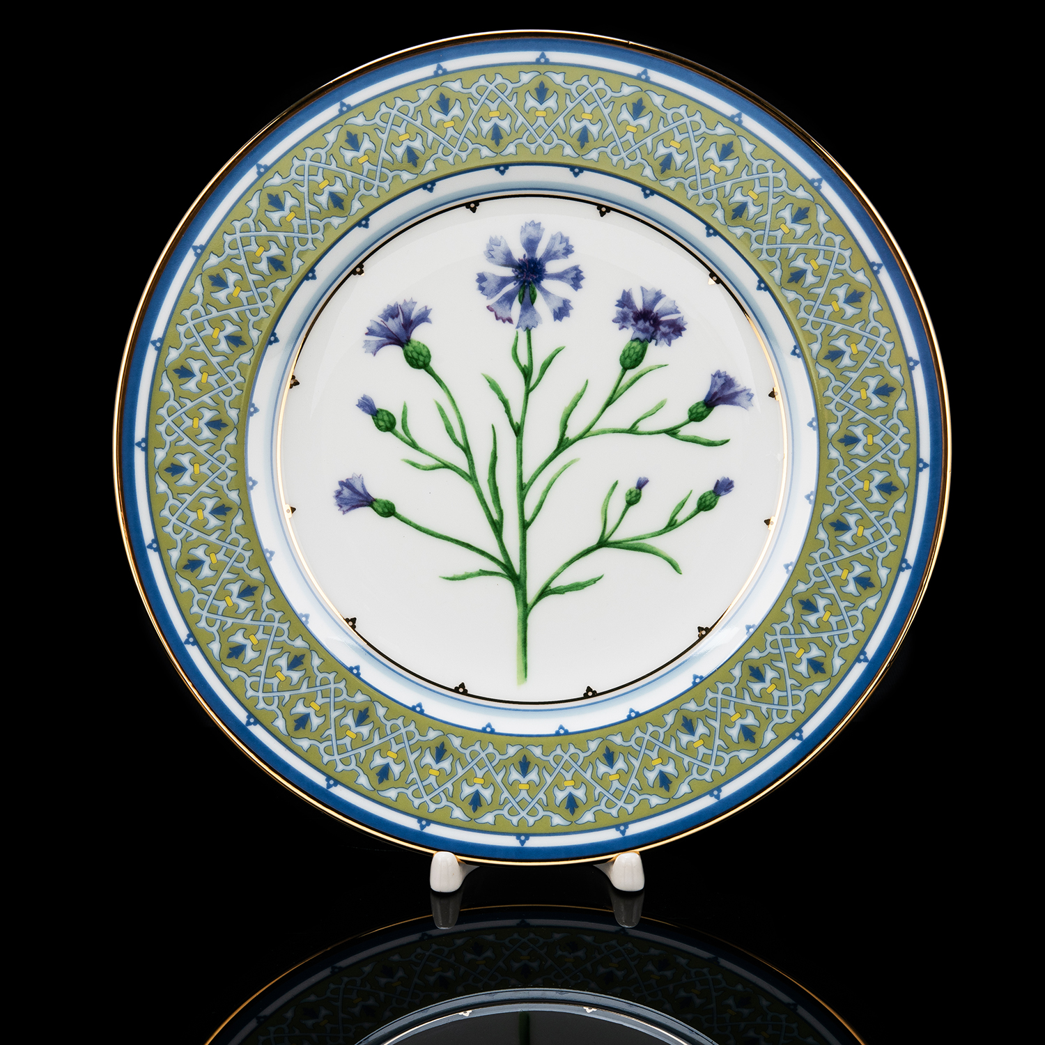Декоративная тарелка "Небесно-голубой василек". Форма Европейская. ИФЗ