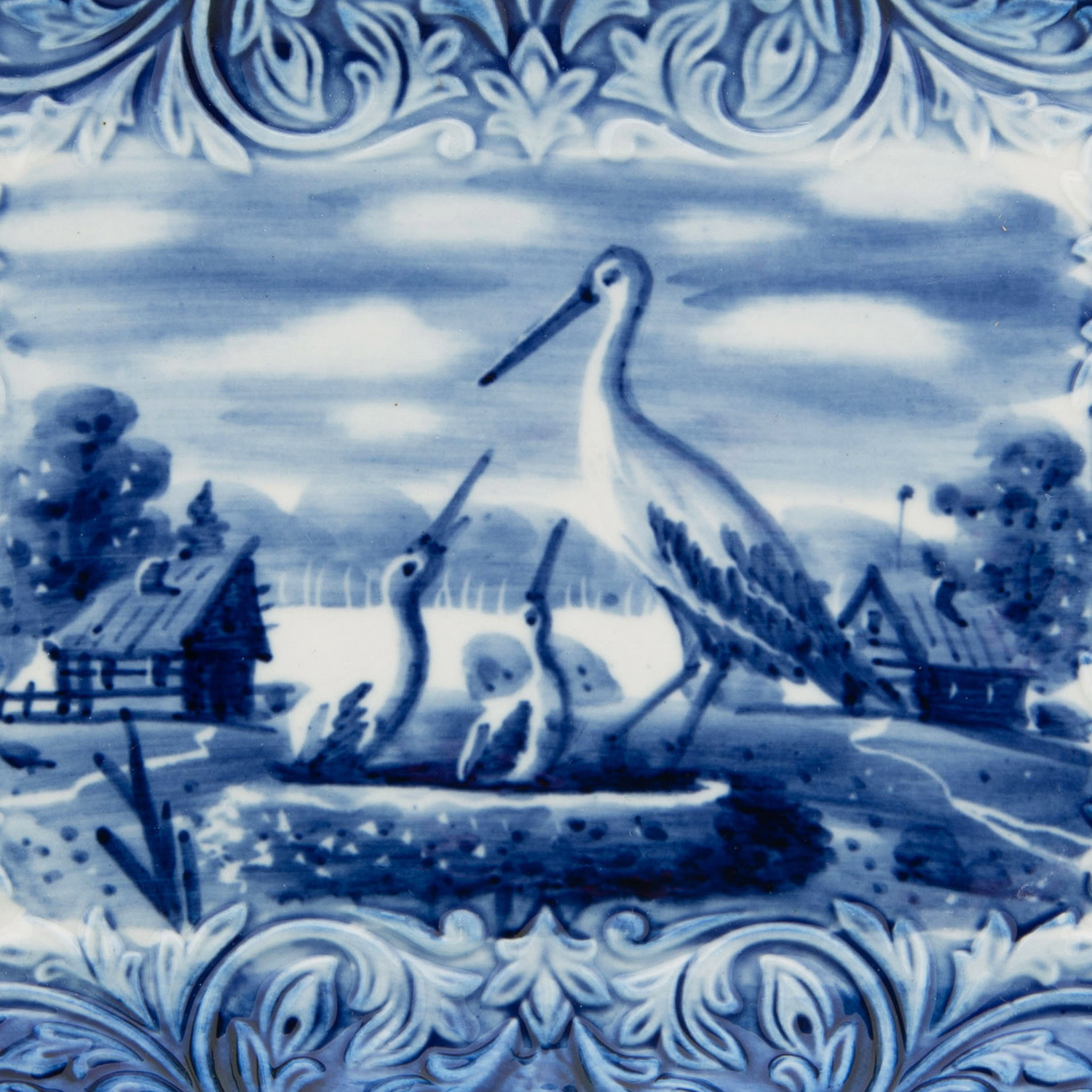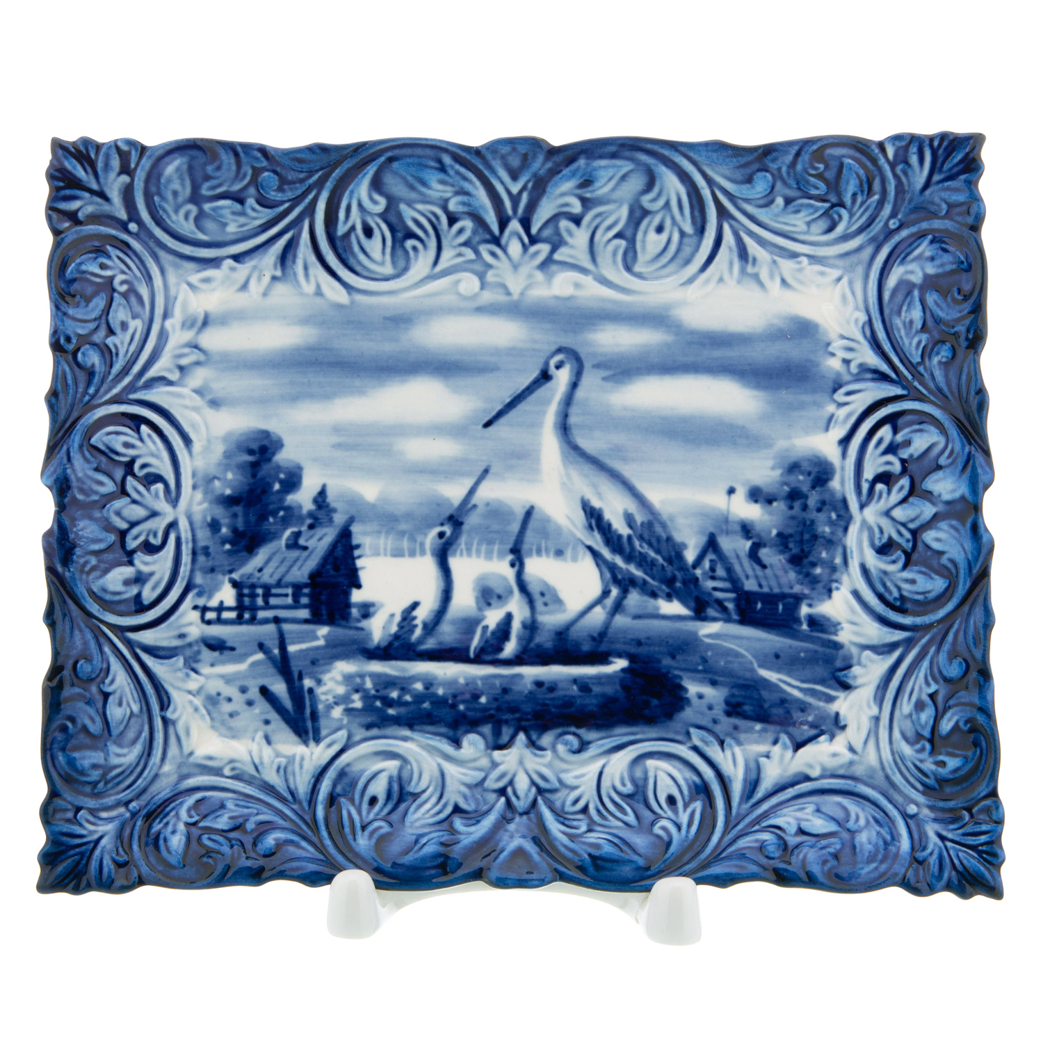 Тарелка сувенирная настенная "Пейзаж". Гжель