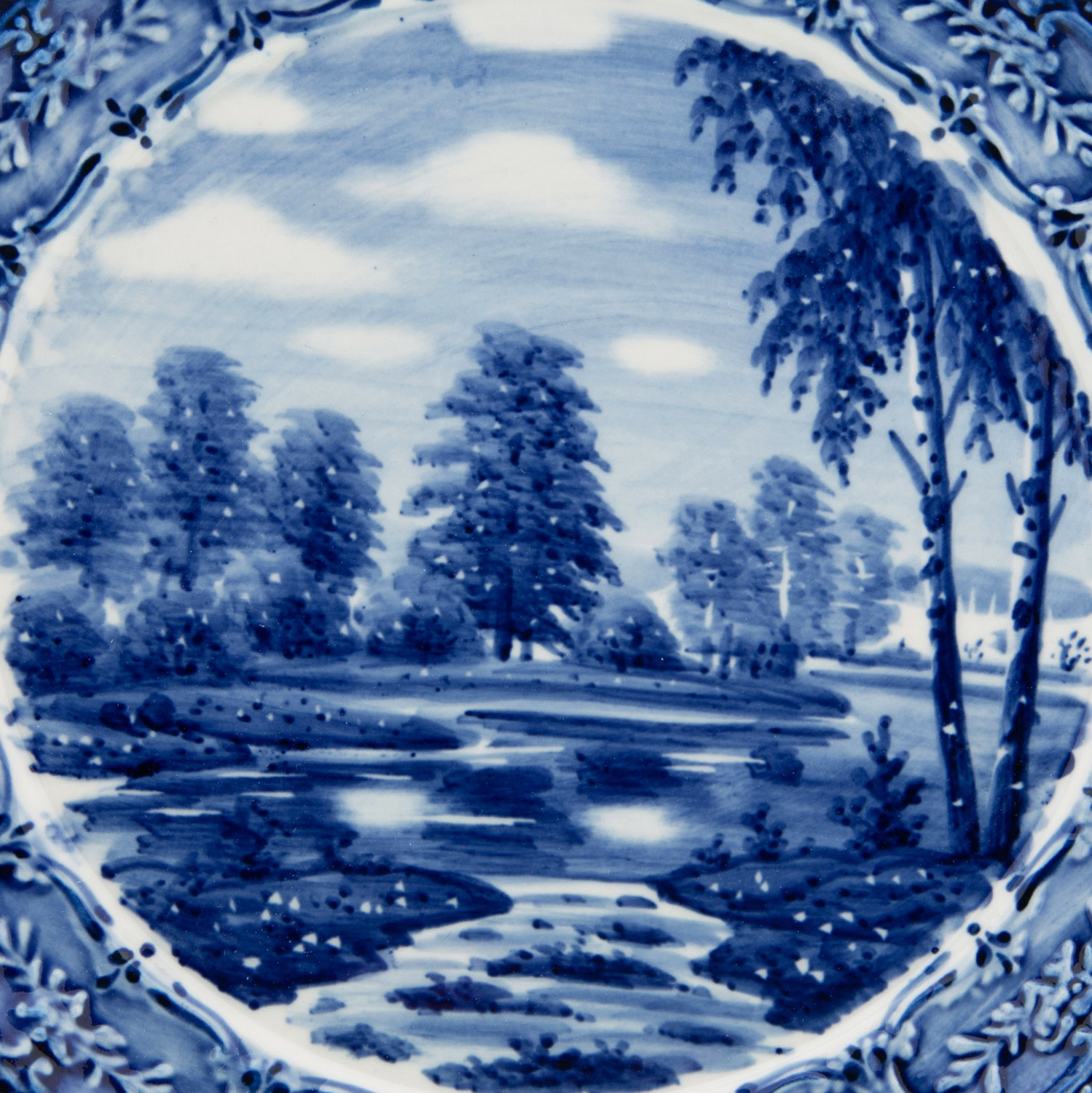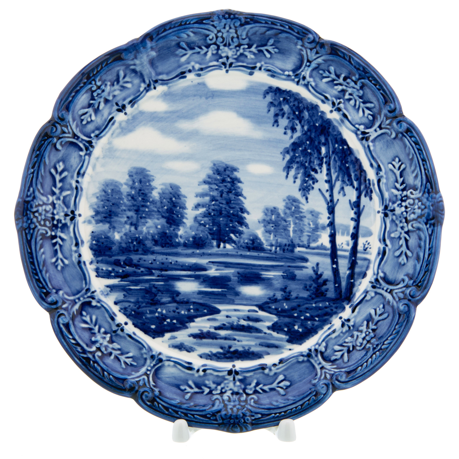 Русские подарки и сувениры → Интерьерные изделия → Декоративные тарелки → Тарелка декоративная "Пейзаж". Гжель