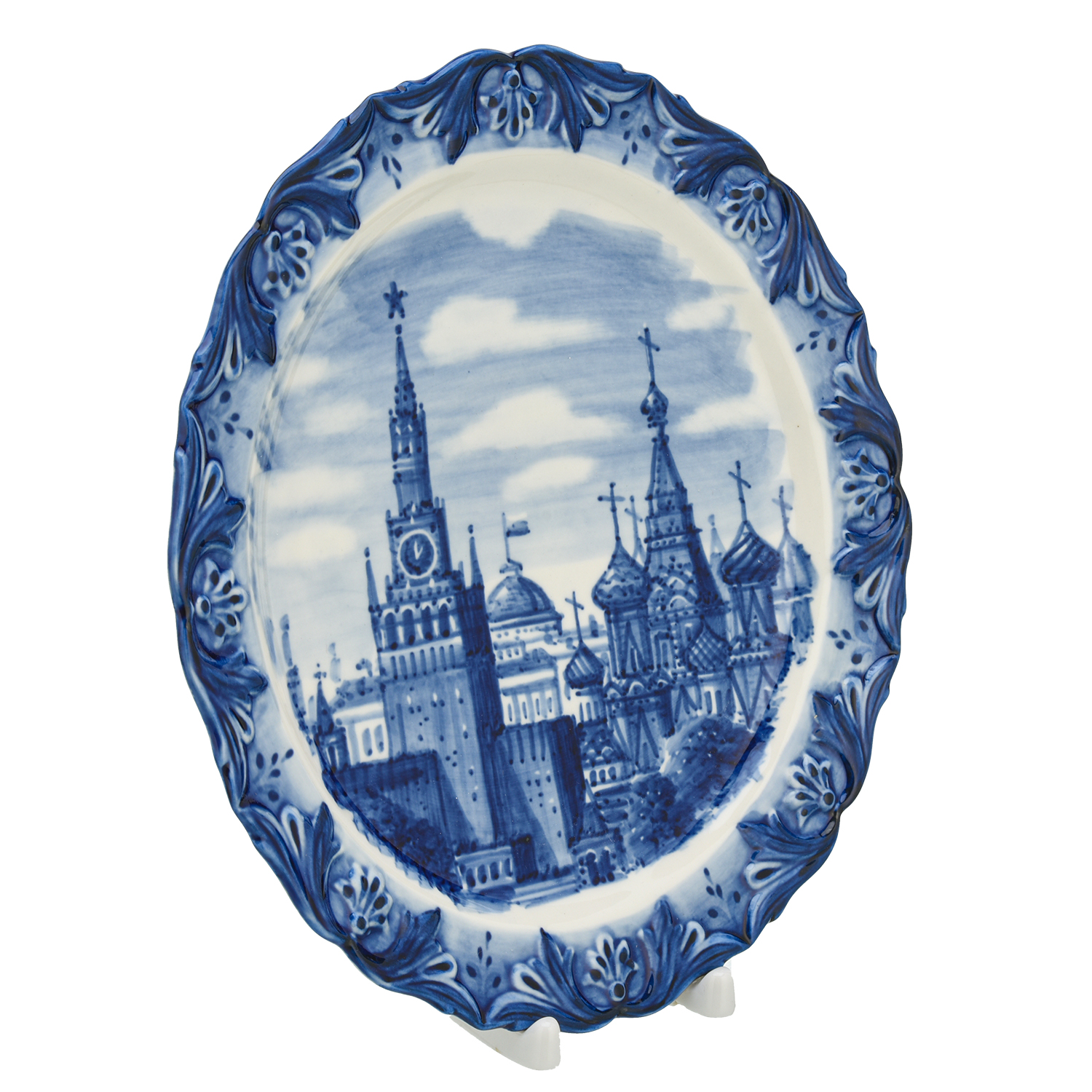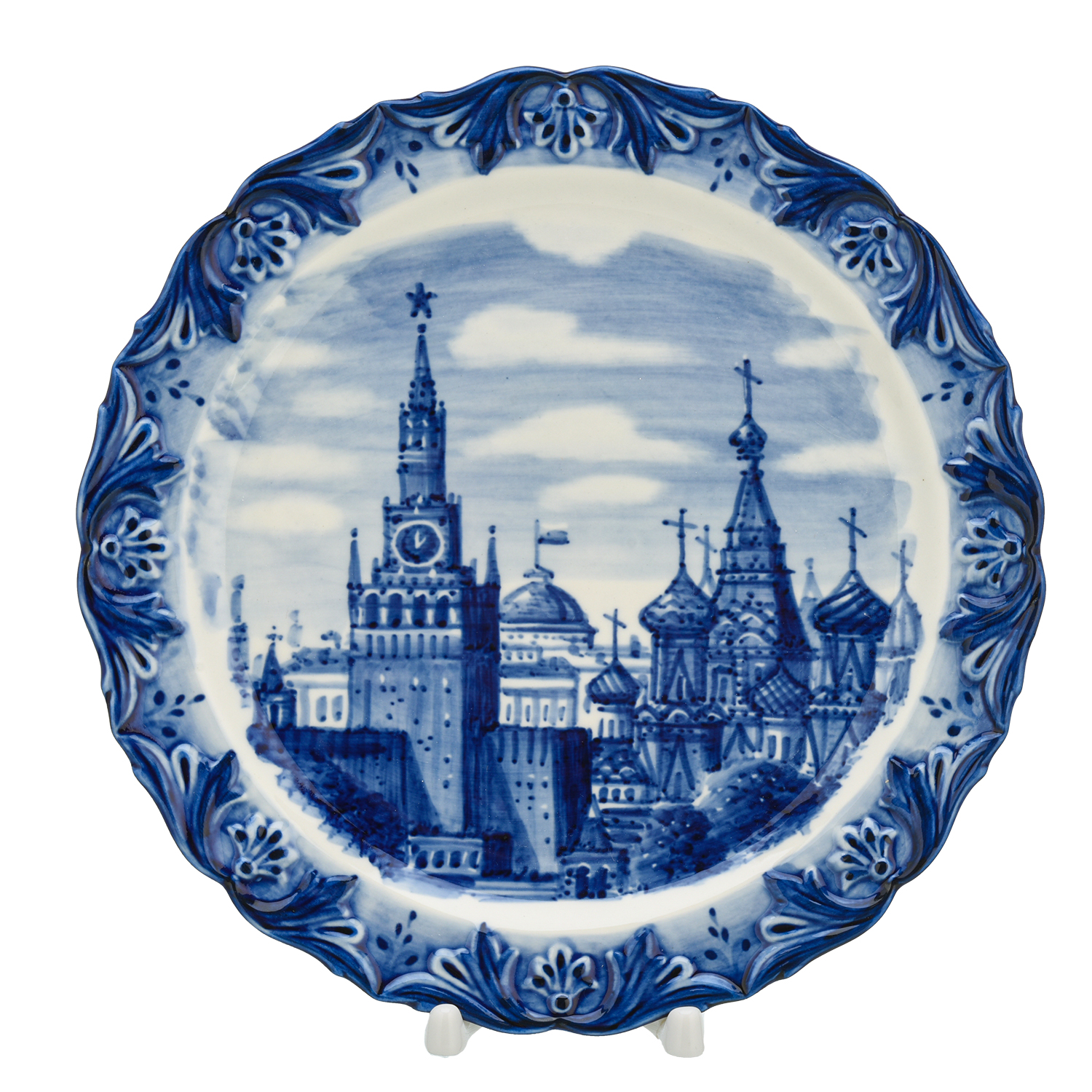 Тарелка сувенирная "Кремль. Храм Василия Блаженного". Гжель