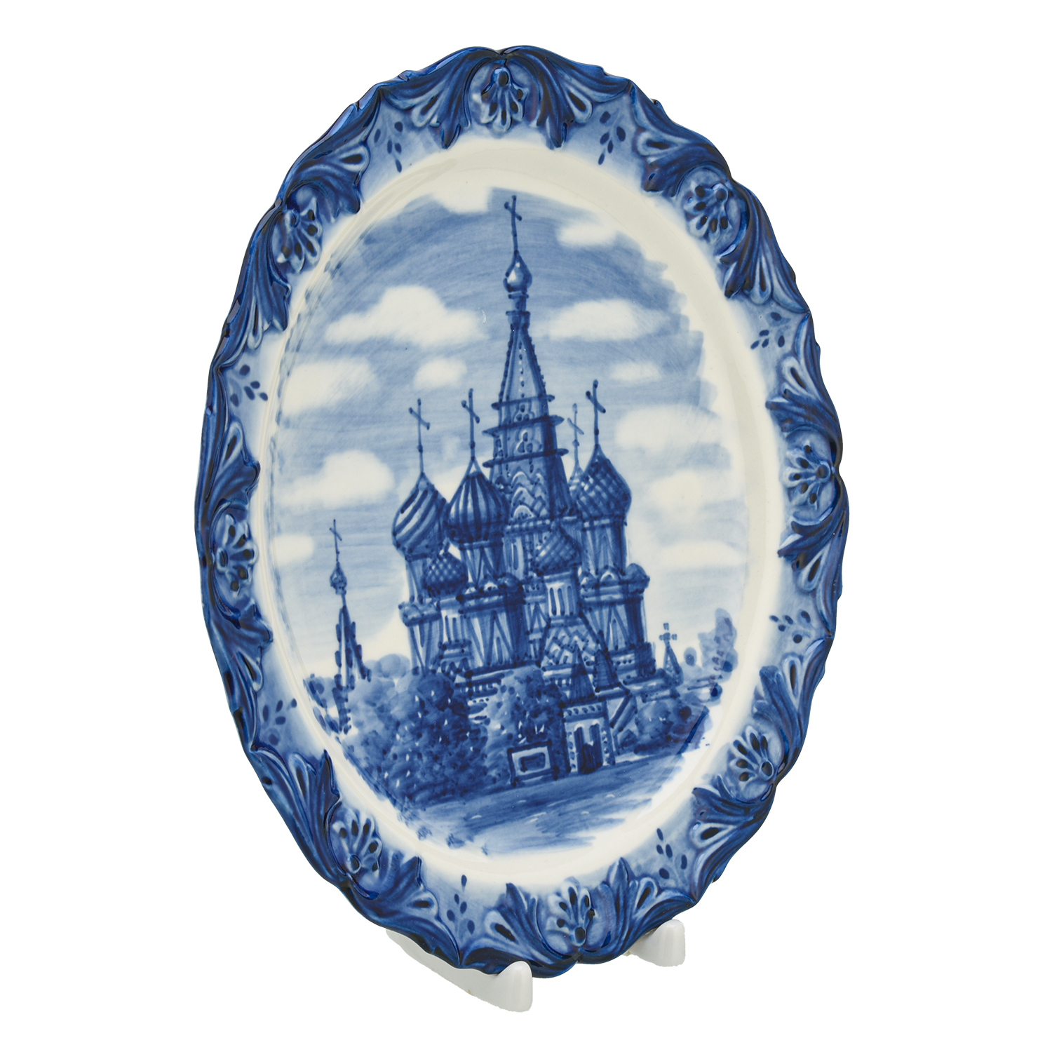 Тарелка сувенирная "Храм Василия Блаженного". Гжель