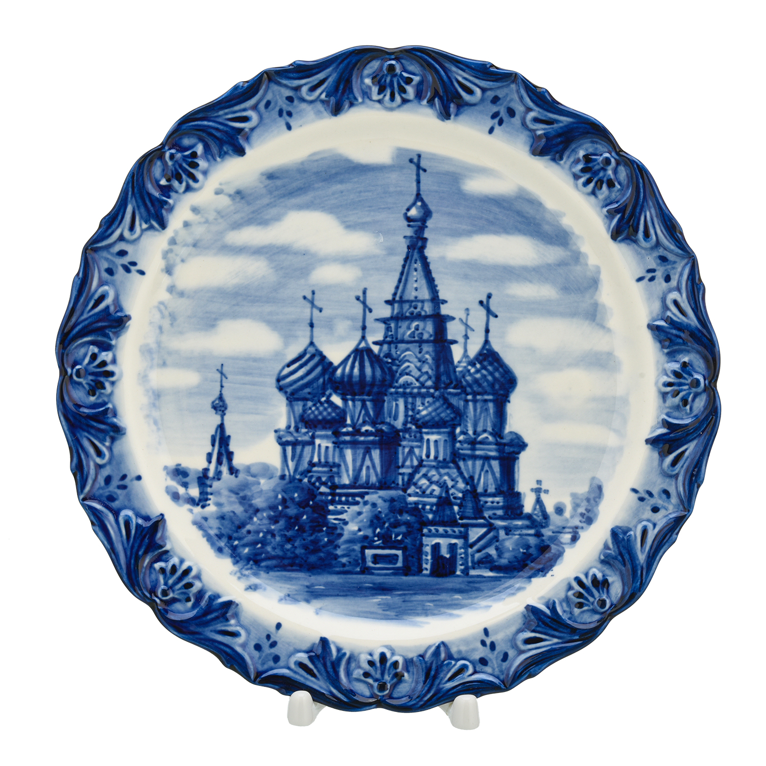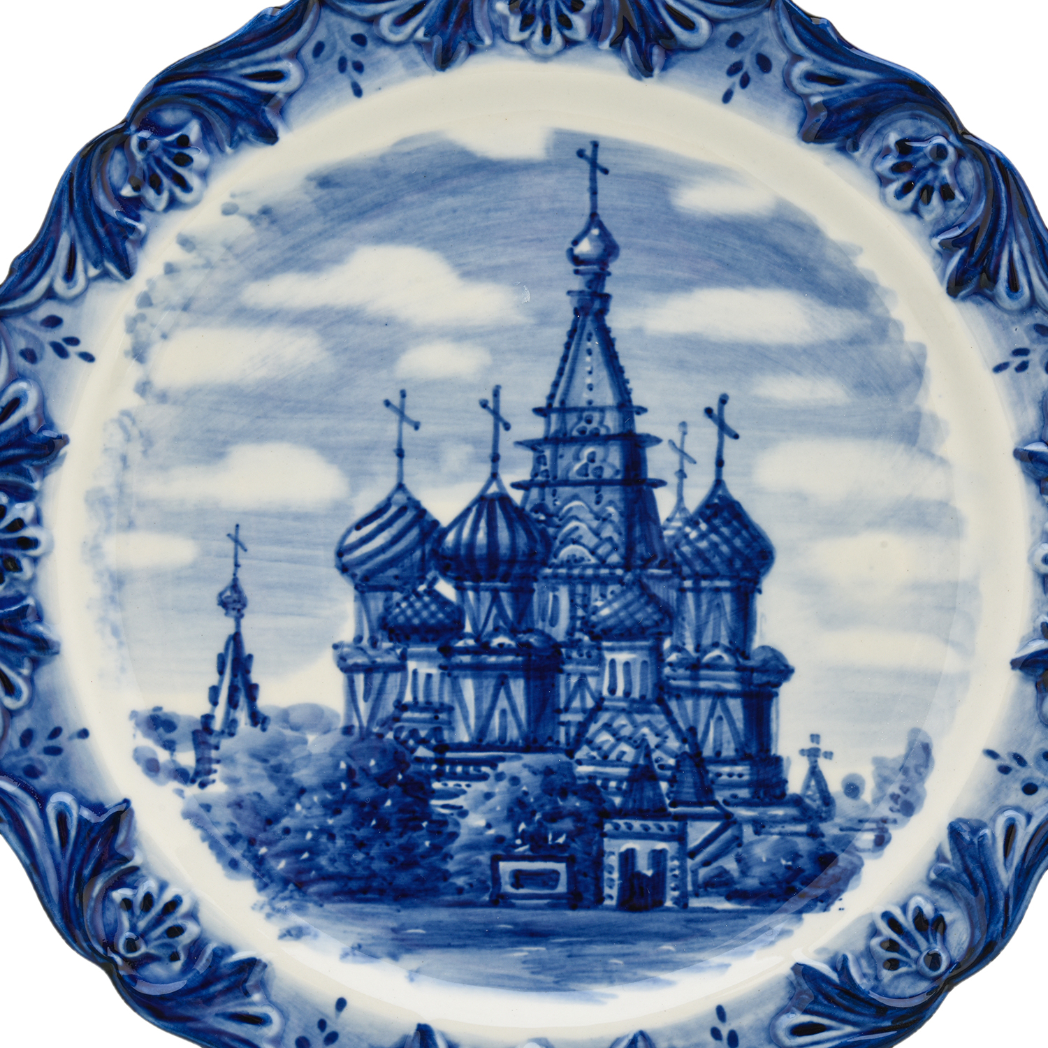 204207 ГжельТарелка сувенирная "Храм Василия Блаженного" 23см