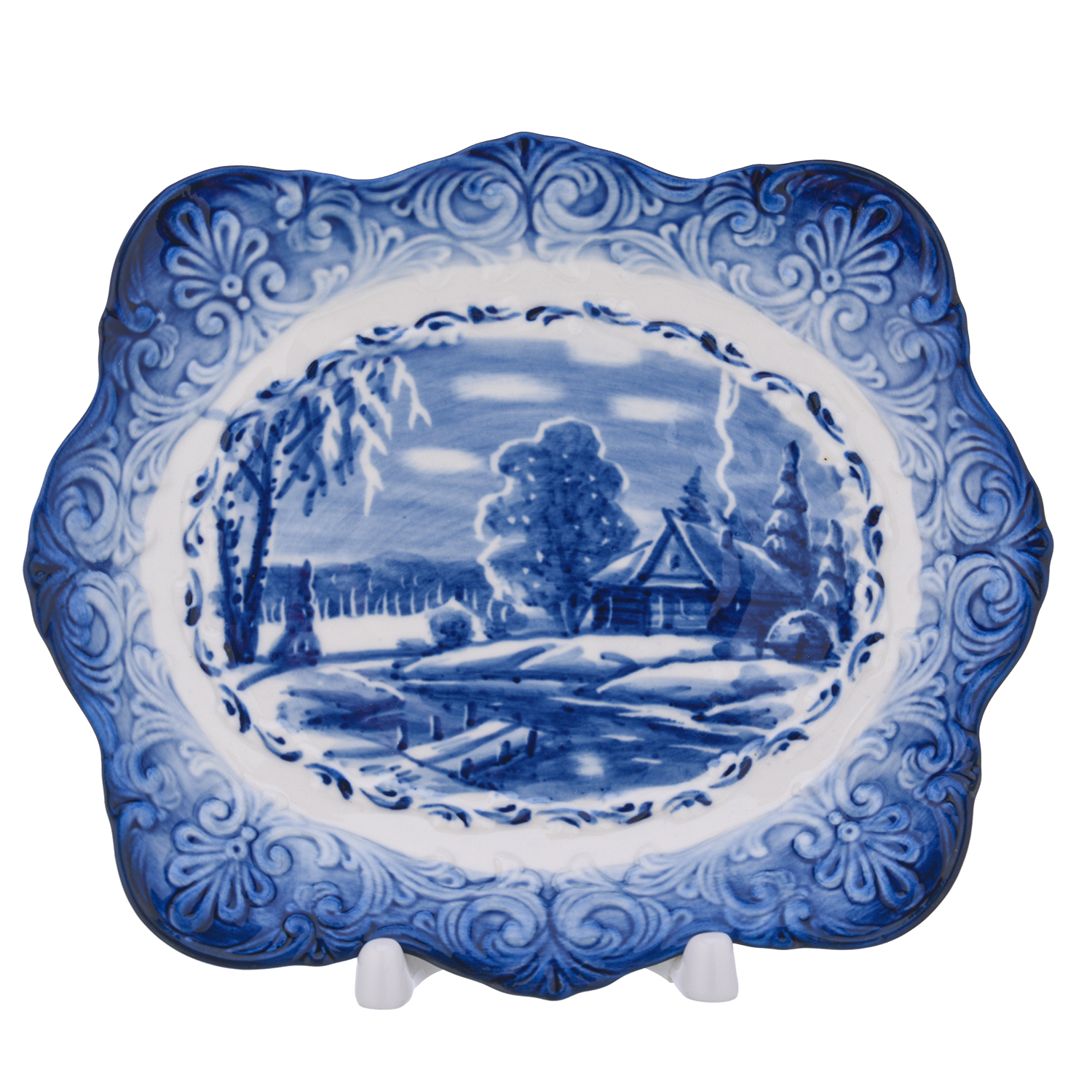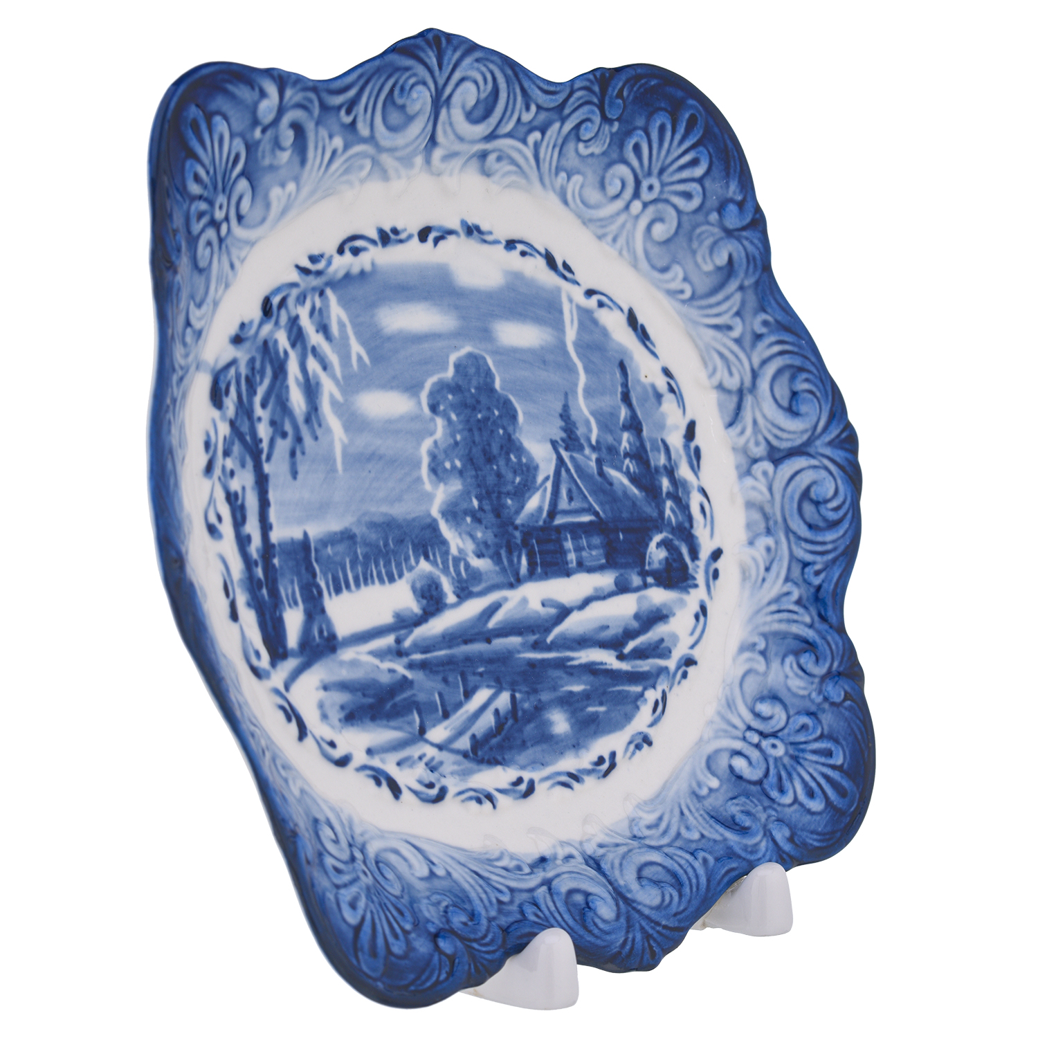 Русские подарки и сувениры → Интерьерные изделия → Декоративные тарелки → Тарелка декоративная "Зима в деревне". Гжель