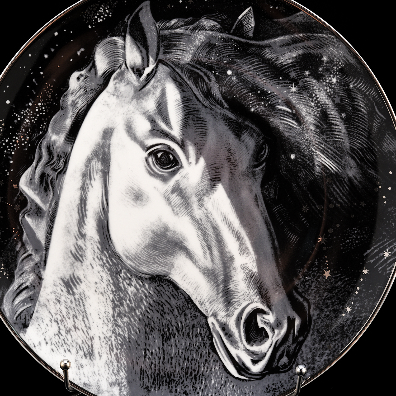 Тарелка декоративная "Черный мустанг". Форма Восточная. ИФЗ.Материал: фарфор.