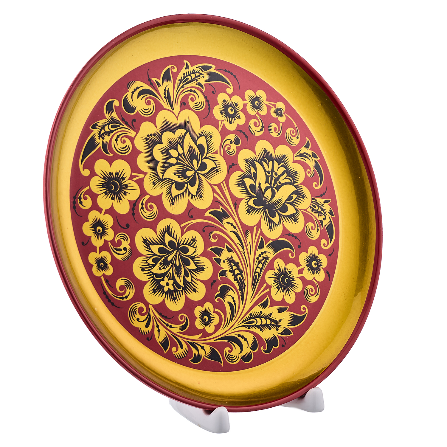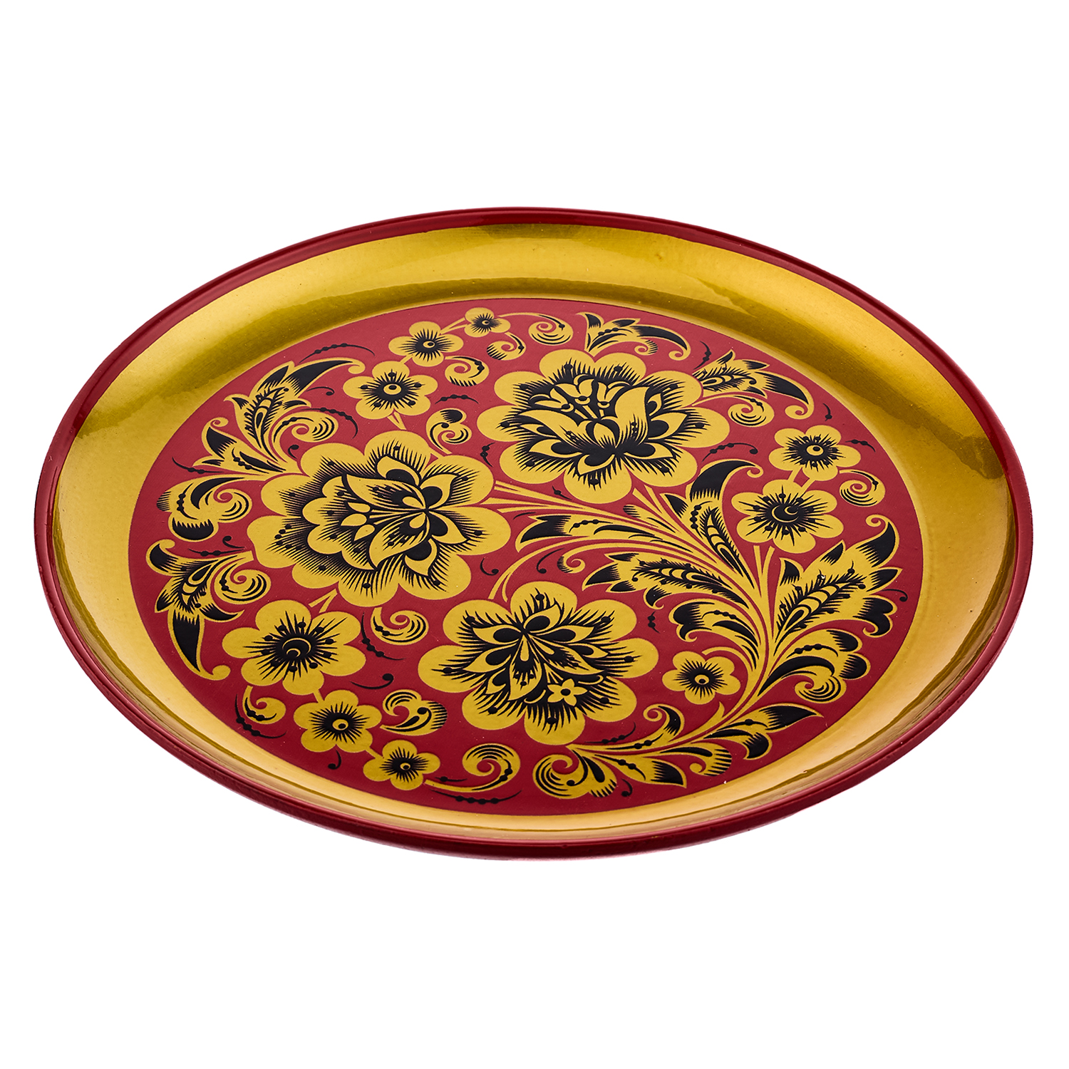 Деревянное панно-тарелка с росписью "Кудрина". Хохлома