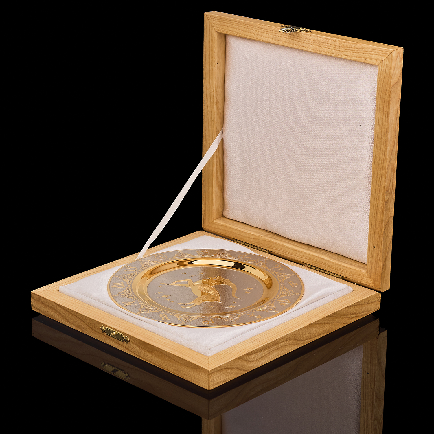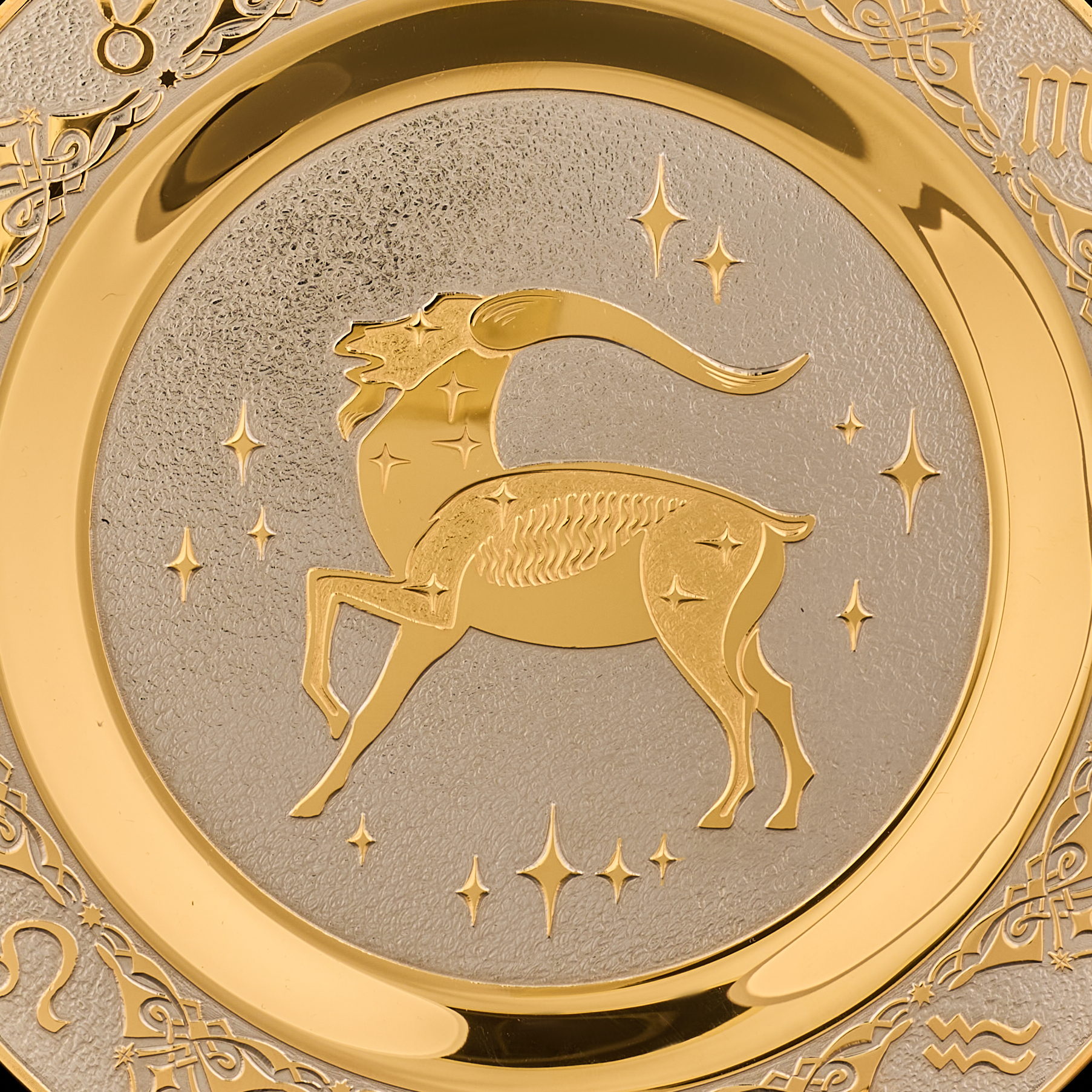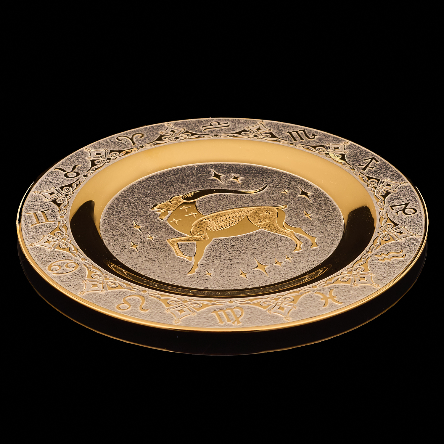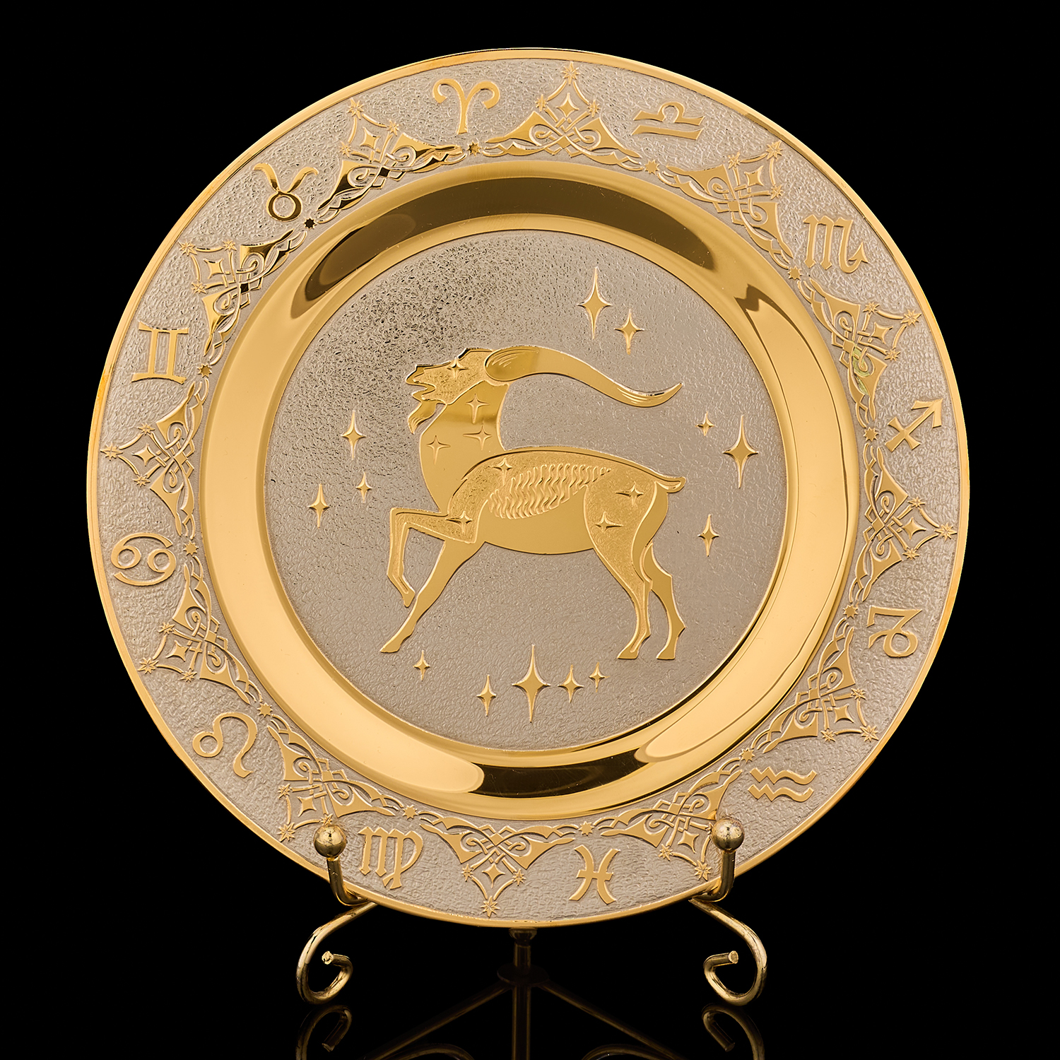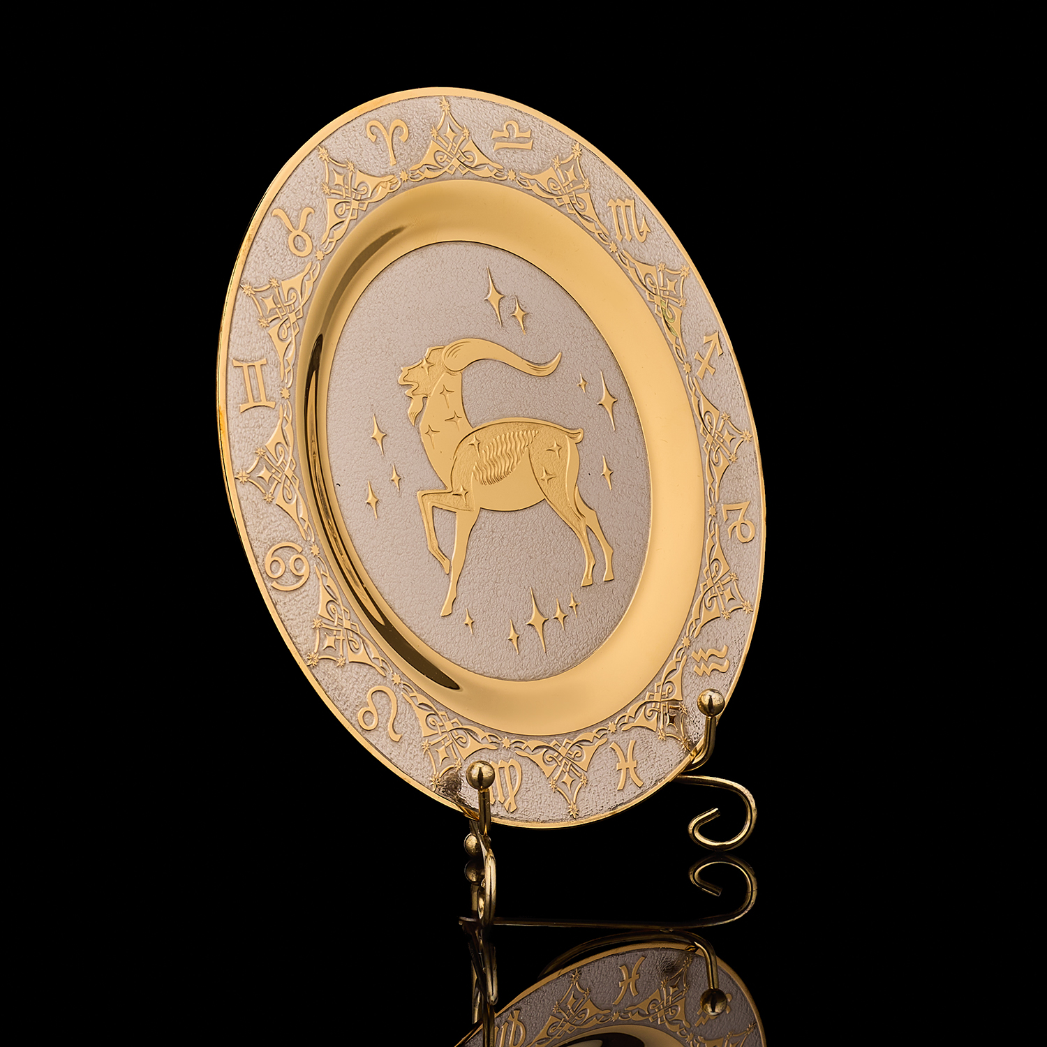 Русские подарки и сувениры → Интерьерные изделия → Декоративные тарелки → Тарелка декоративная с позолотой "Знак зодиака Козерог". Златоуст
