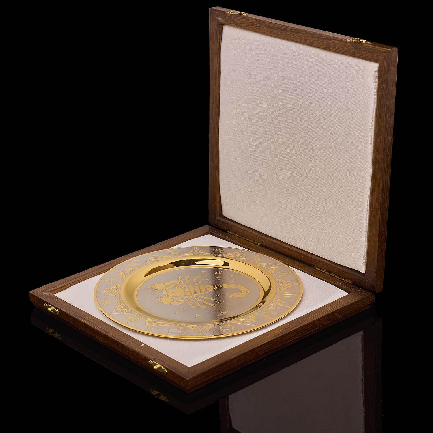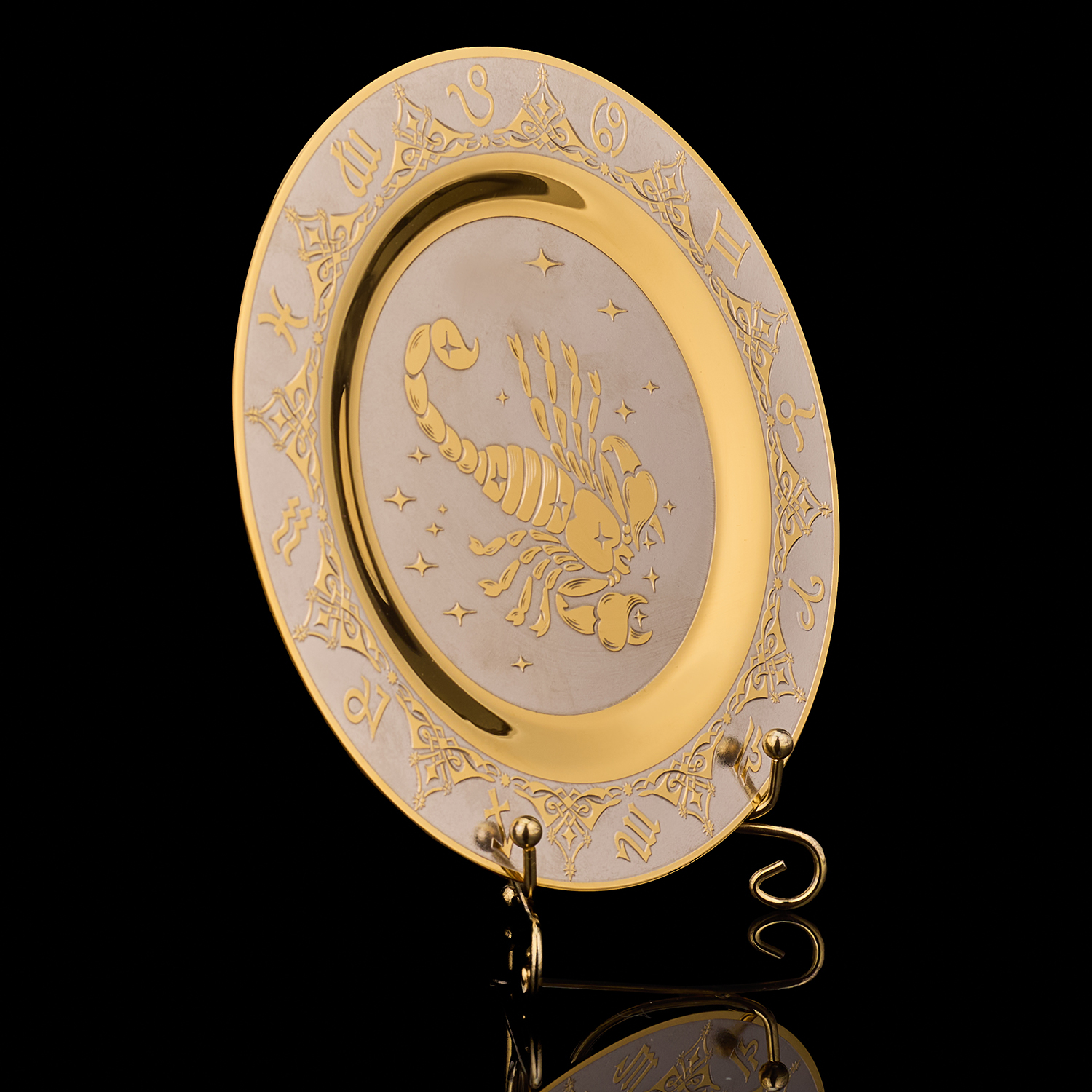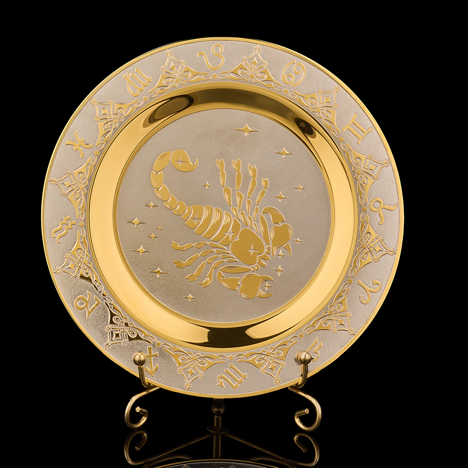 Тарелка декоративная с позолотой "Знак зодиака Скорпион". Златоуст.Материалы: латунь, никель, золото 999,9*.