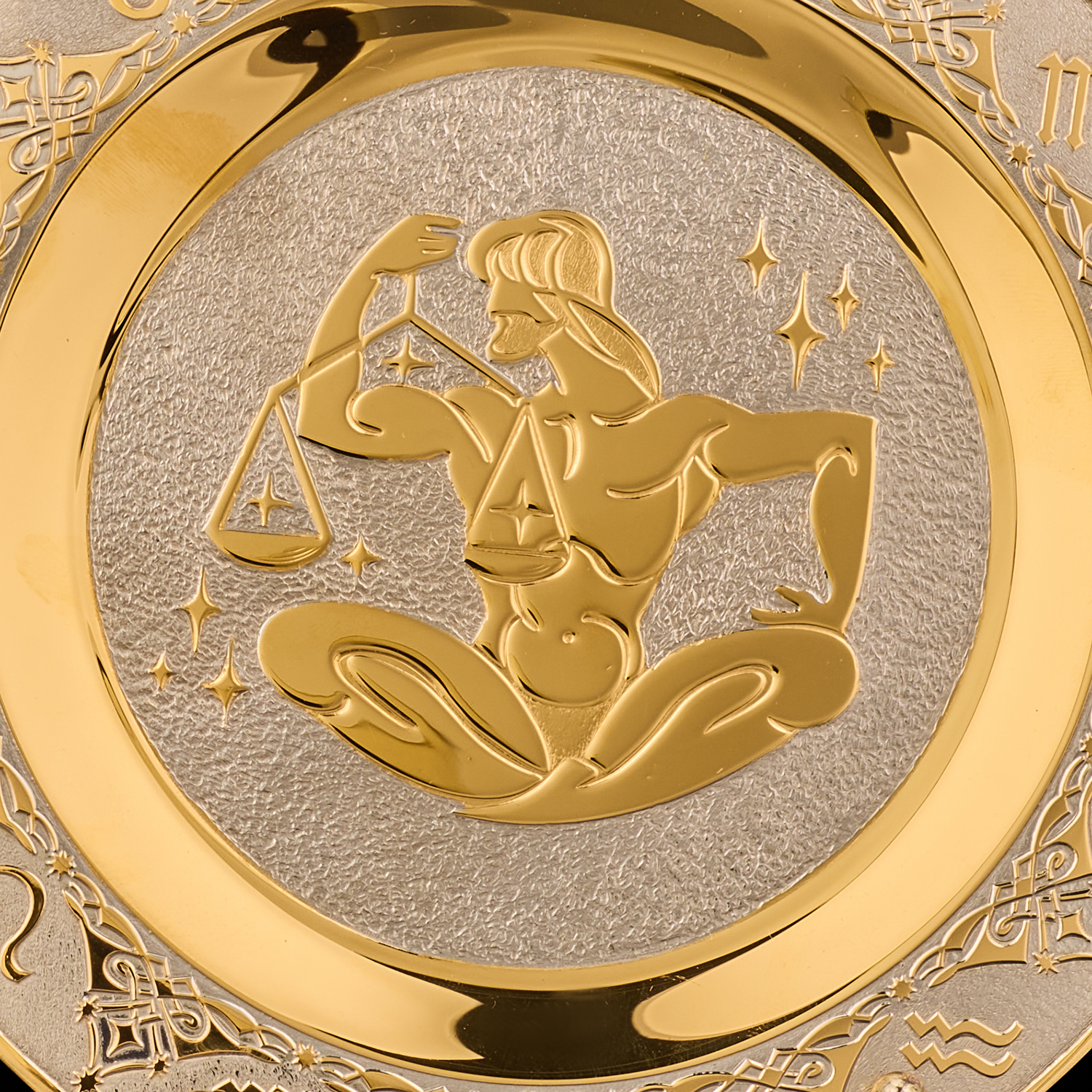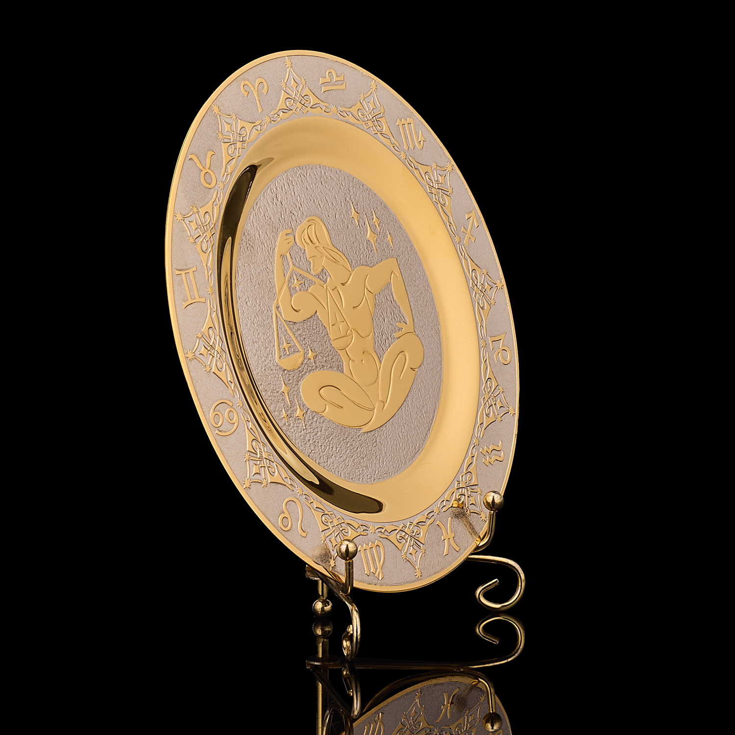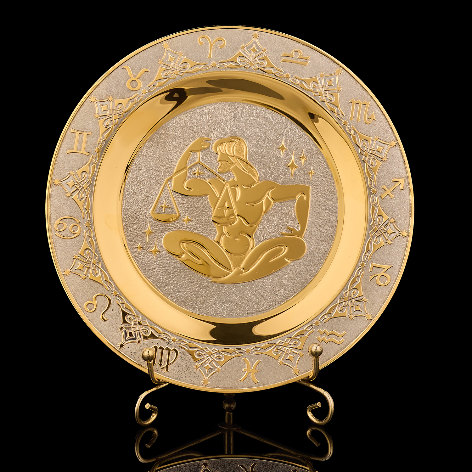 Русские подарки и сувениры → Интерьерные изделия → Декоративные тарелки → Тарелка декоративная с позолотой "Знак зодиака Весы". Златоуст