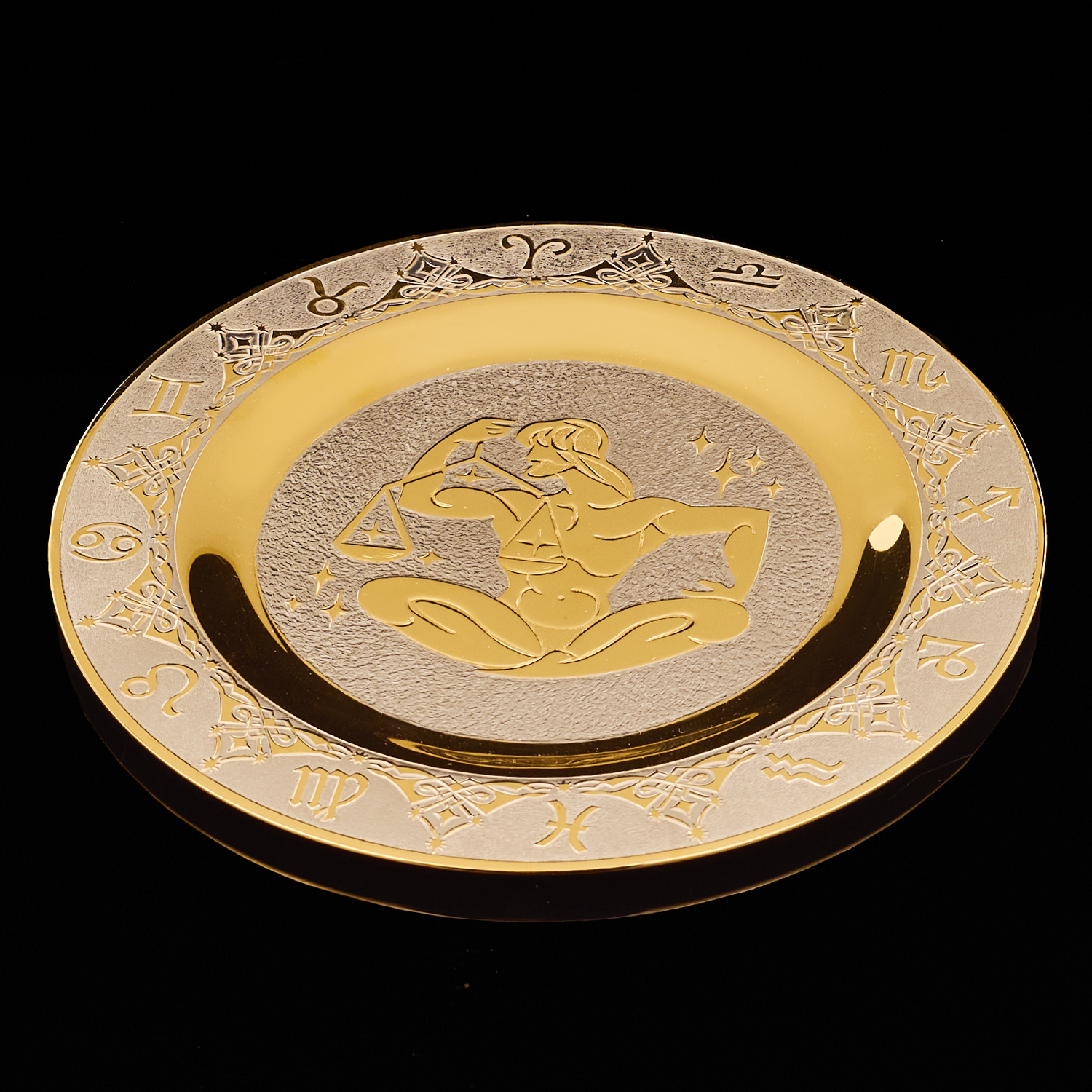 Тарелка декоративная с позолотой "Знак зодиака Весы". Златоуст.Материалы: латунь, никель, золото 999,9*.