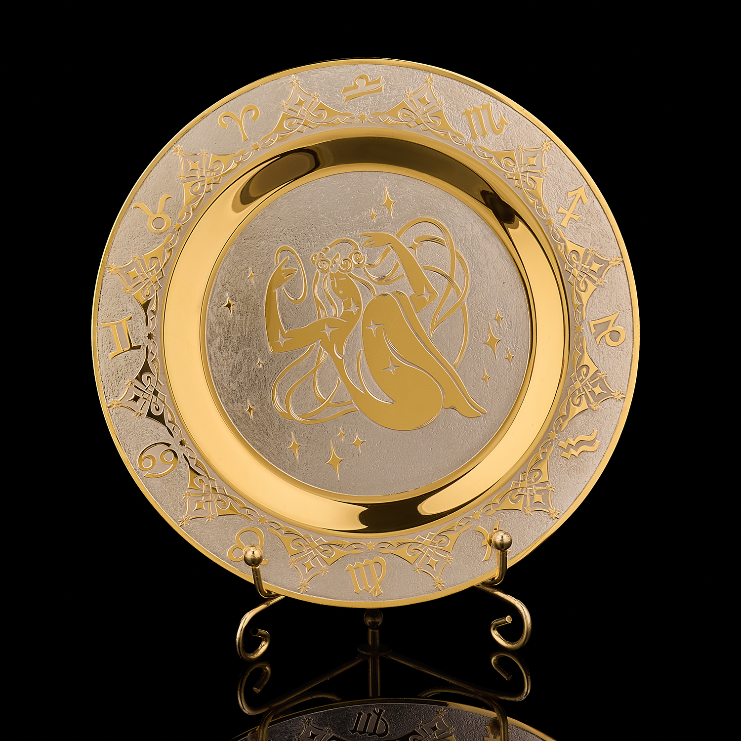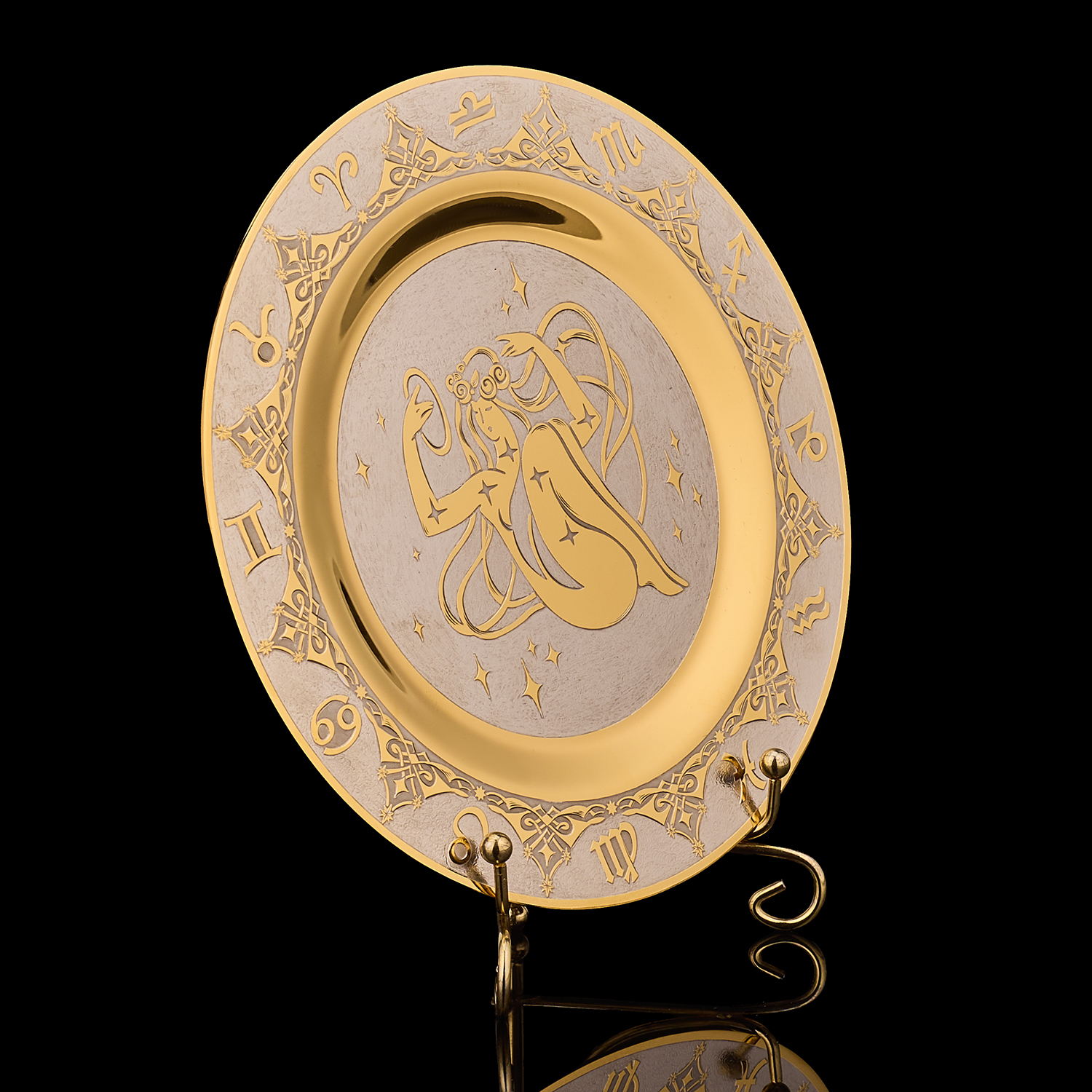 Тарелка декоративная с позолотой "Знак зодиака Дева". Златоуст