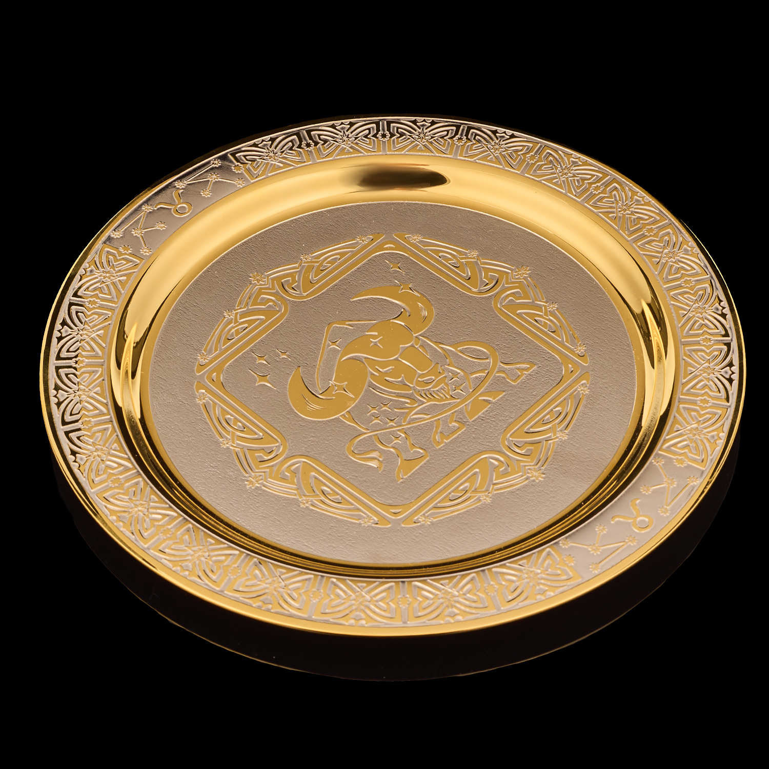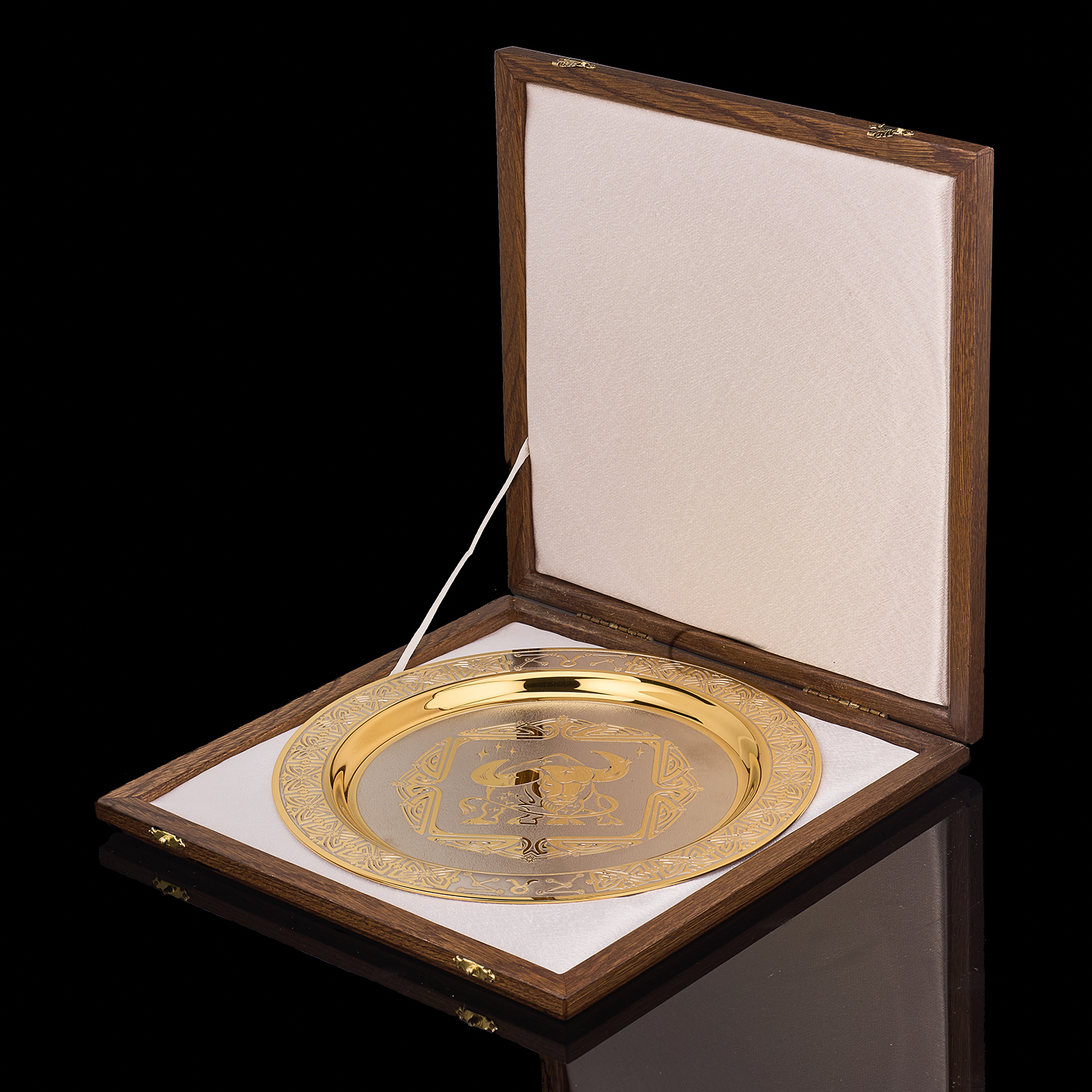 Тарелка декоративная с позолотой "Знак зодиака Телец". Златоуст.Материалы: латунь, никель, золото 999,9*.