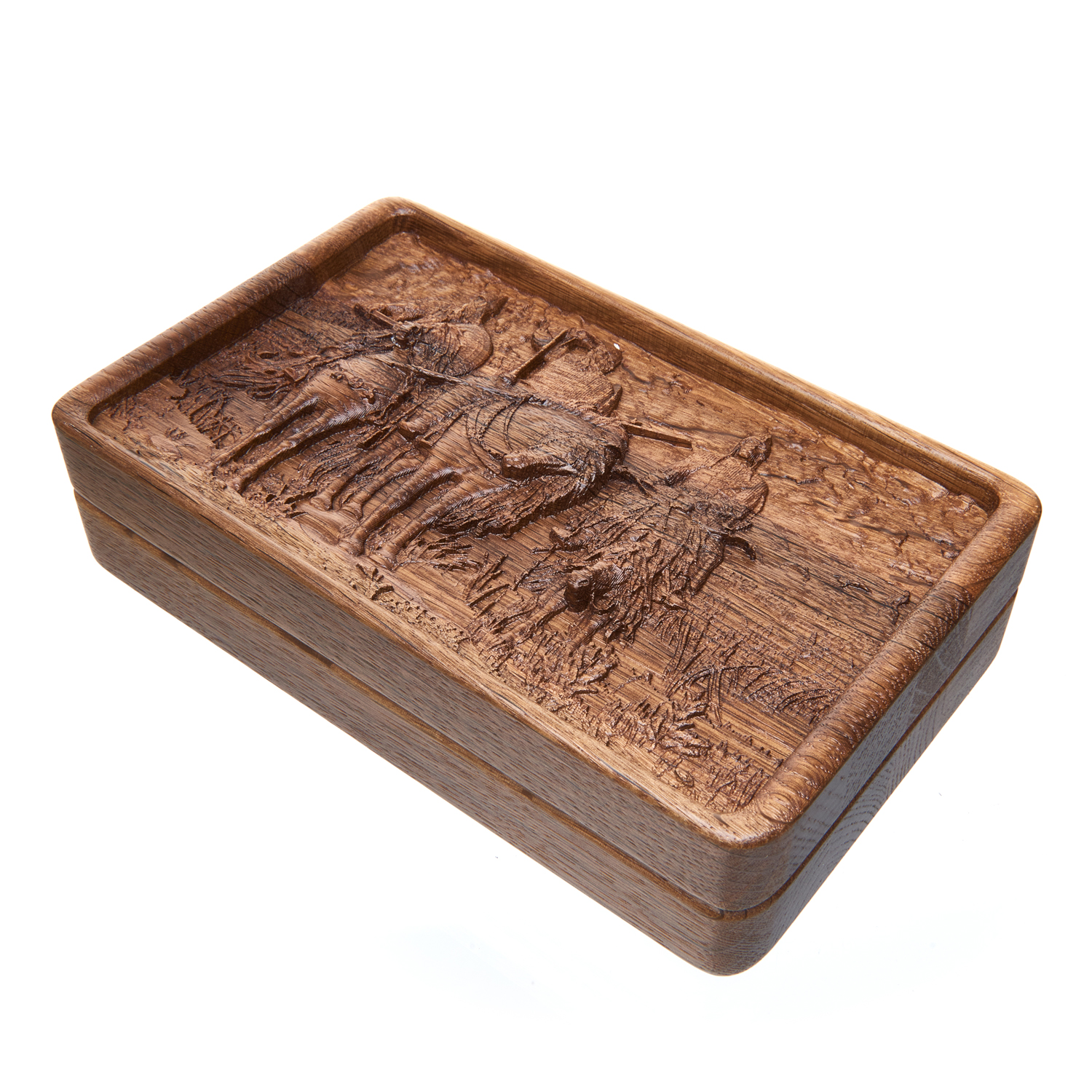 Русские подарки и сувениры → Настольные игры → Домино → 0053584/Домино D6 в резной дубовой шкатулке "БОГАТЫРИ" RTD-305.M