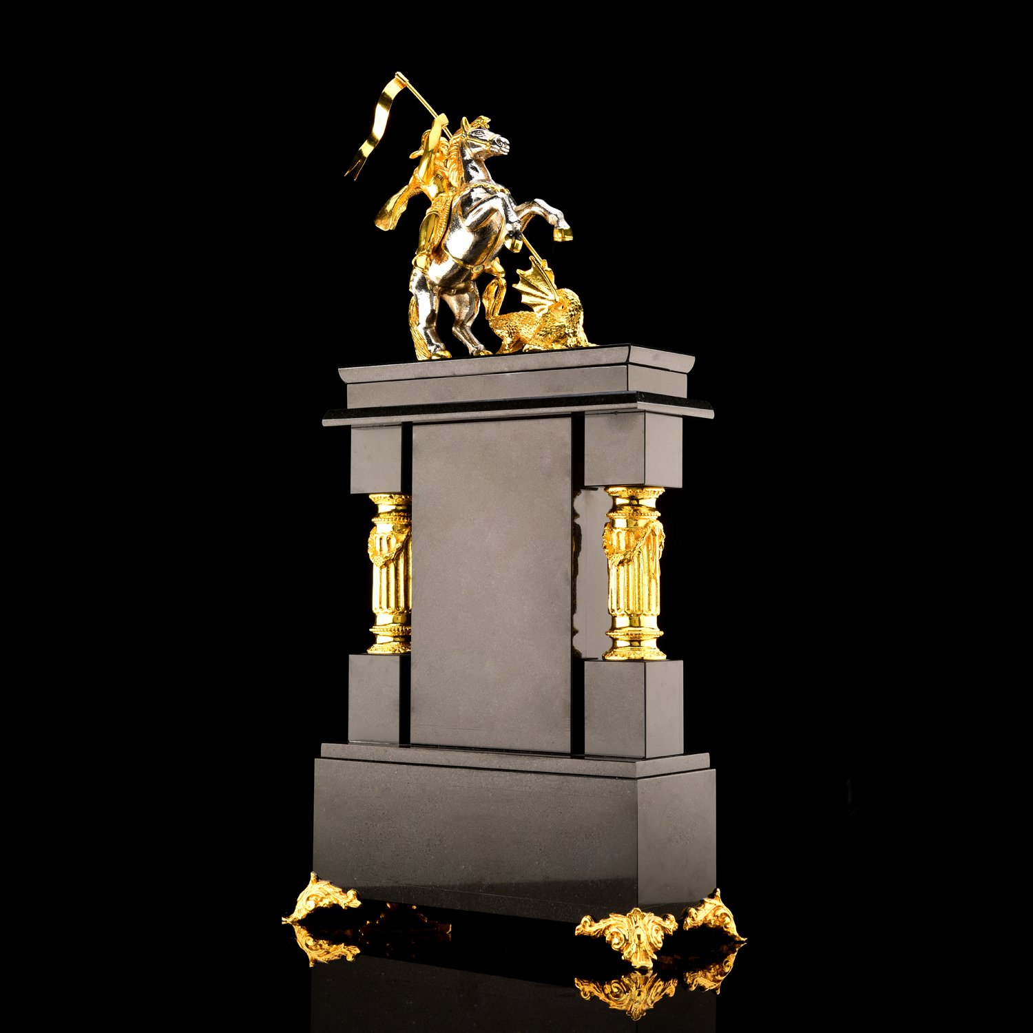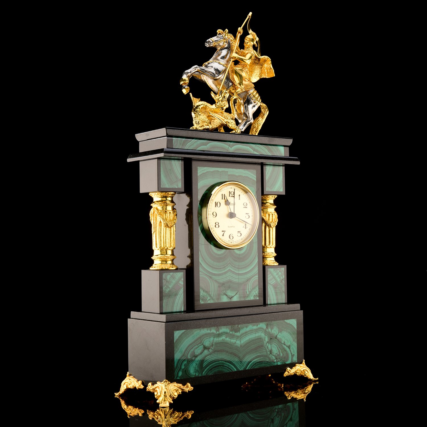 Нат.камень ЧАСЫ"Георгий -Победоносец" Малахит 210*90*420мм 9000гр
