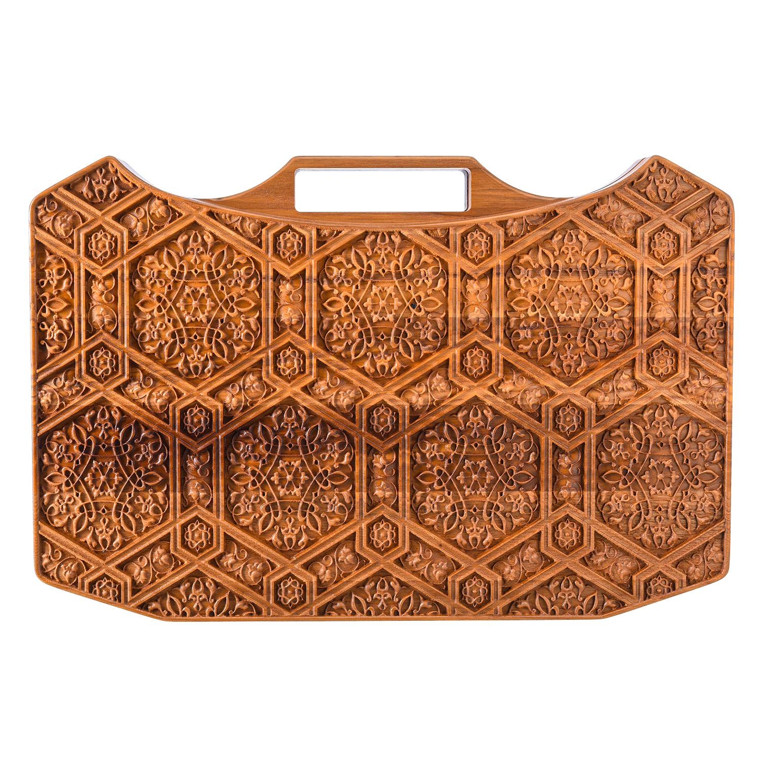 Покерный набор в резном чемоданчике из ясеня "Арабеска-3".Размер: 360х240х50 мм