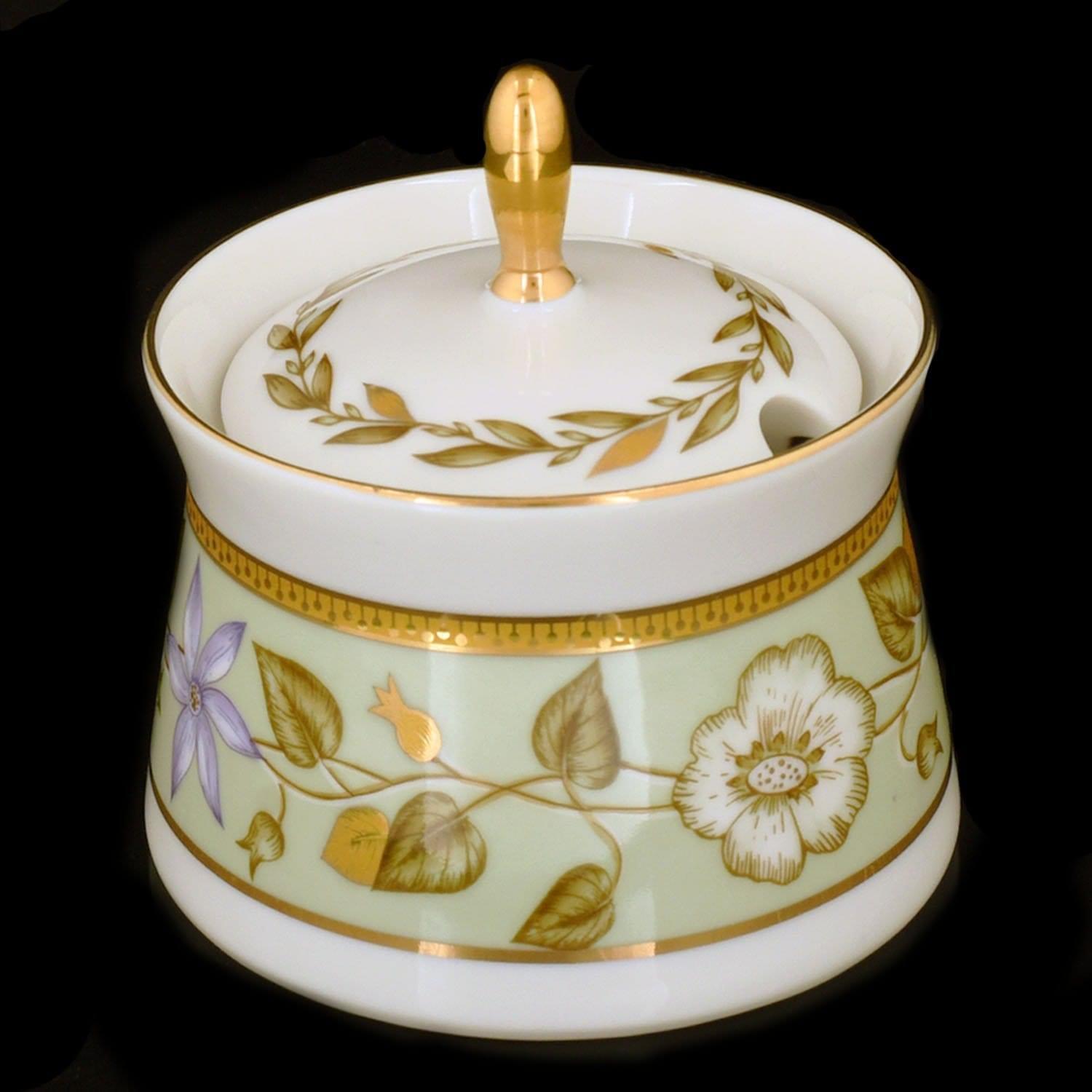 Эффектная позолота нанесена поверх стеклянной глазури тонкой кистью. Авторская работа, хренница "Нефритовый фон"  - это чудесная покупка, для того чтобы придать сервировке стола изыску и подчеркнуть чувство вкуса хозяйки.
