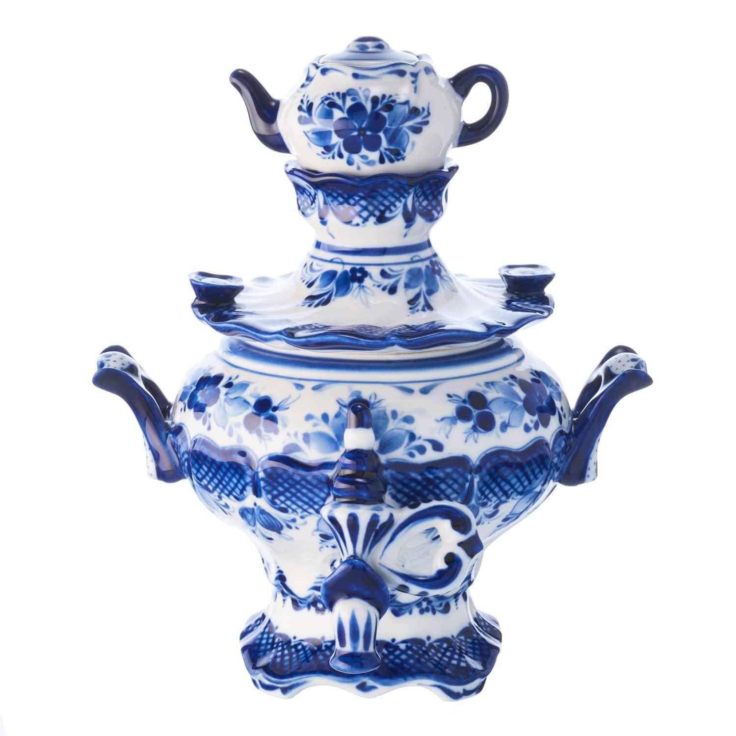 Чайница "Самовар". Гжель
