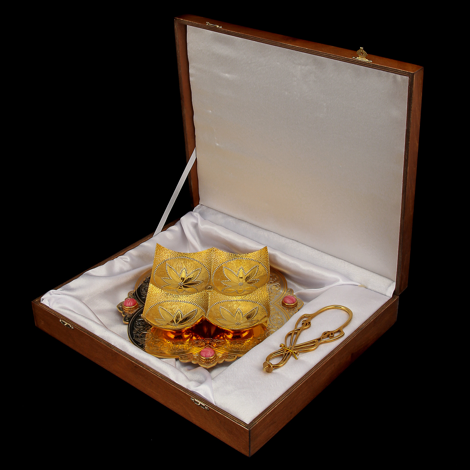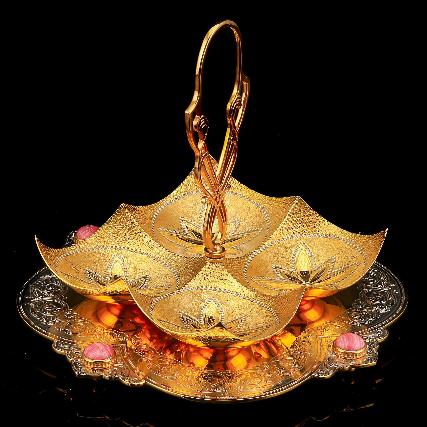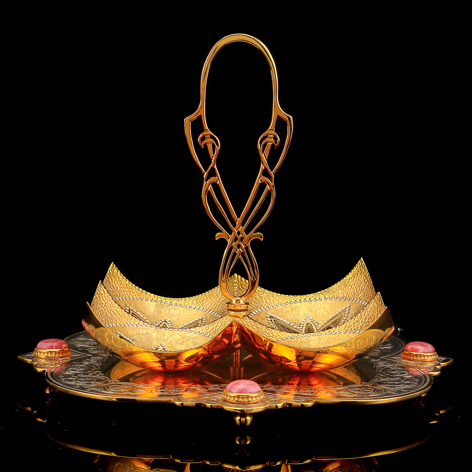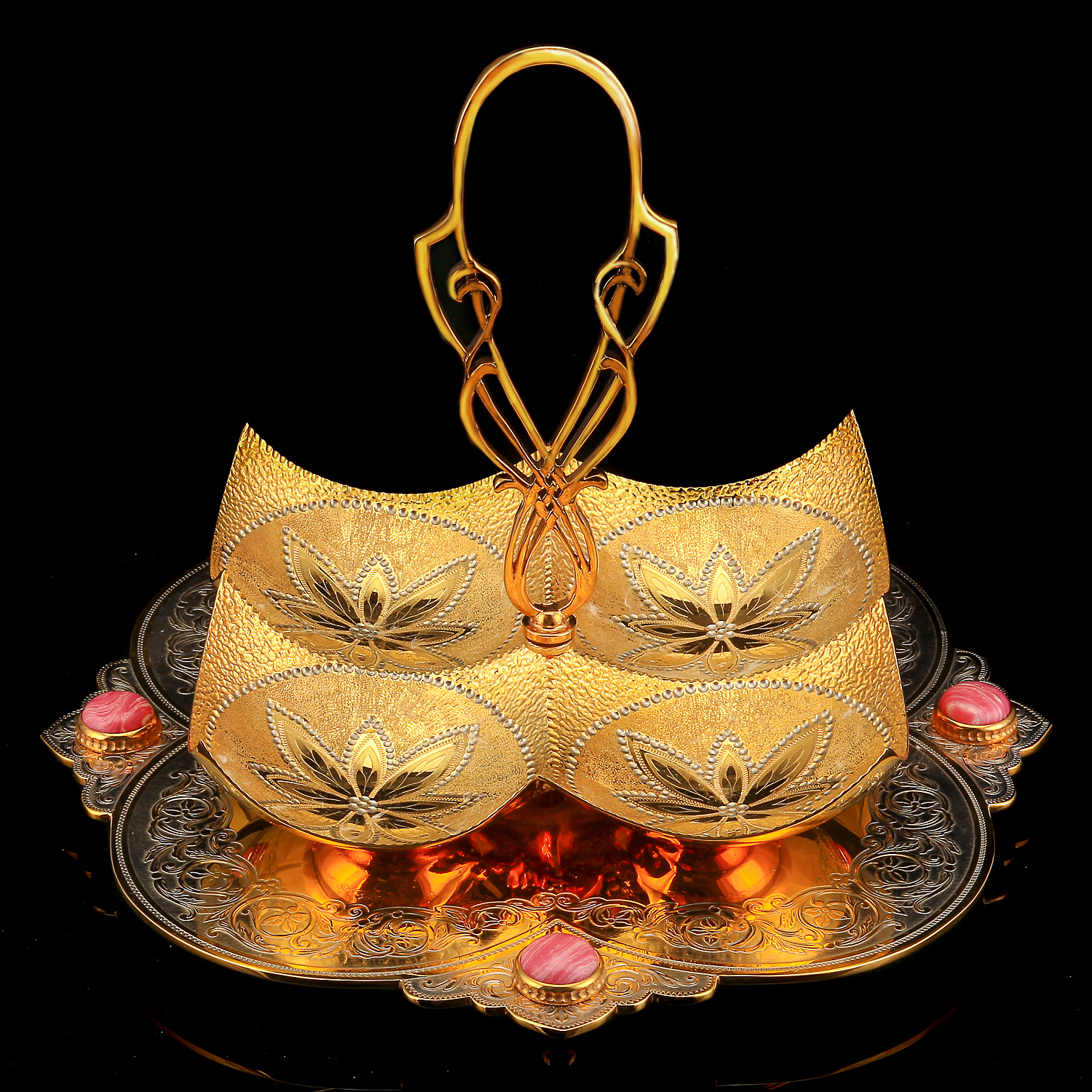Менажница украшенная. Златоуст.Материалы: латунь, никель, золото 999,9*, кабошоны.