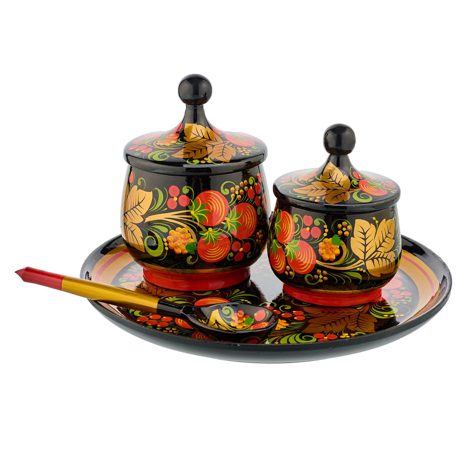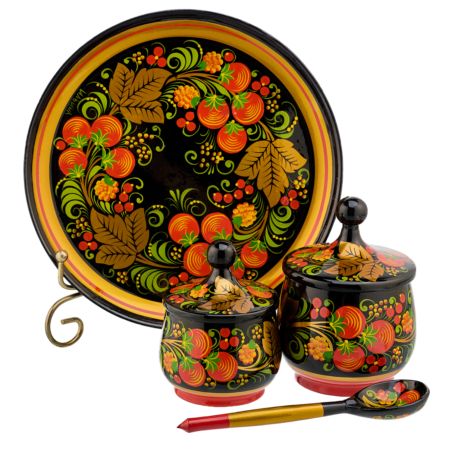Набор посуды "Ягоды". Хохлома.Материалы: дерево, краски, лак.
