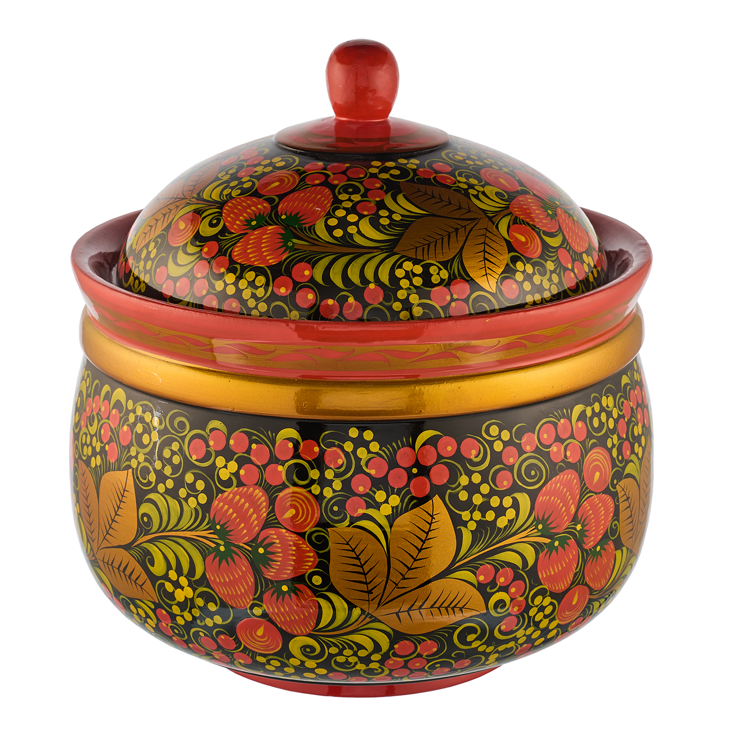Супница "Клубника". Хохлома.Материалы: дерево, краски, лак.