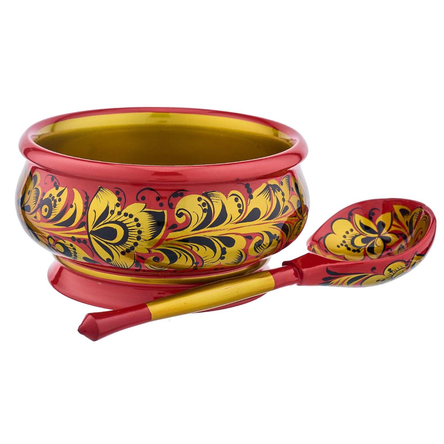 Русские подарки и сувениры → Посуда → Другое → Набор деревянной посуды для супа "Аппетит" с росписью. Хохлома