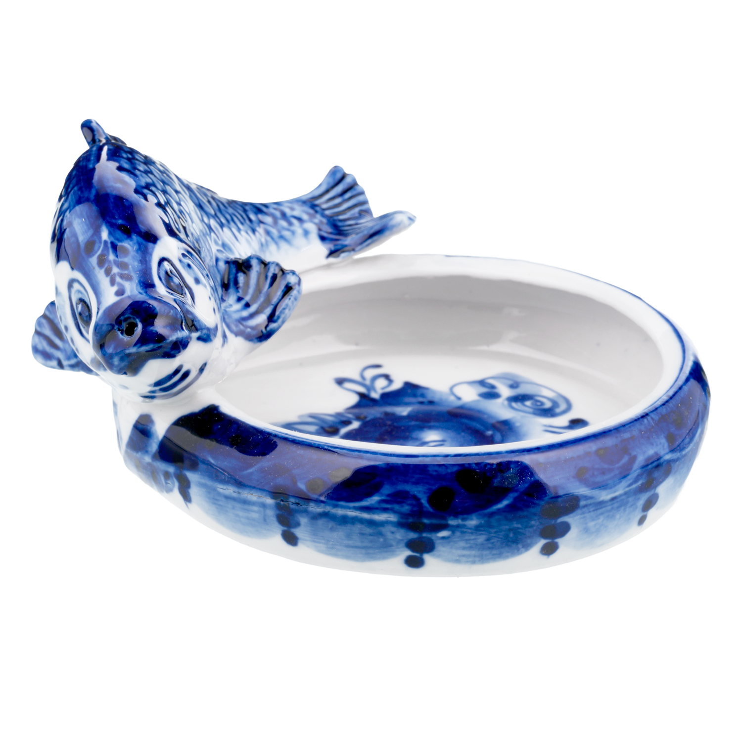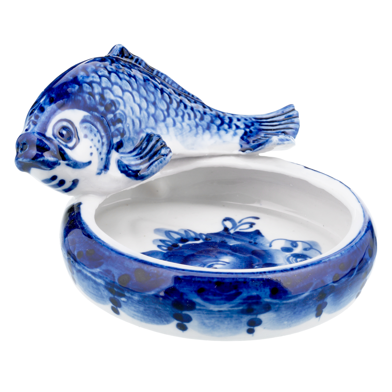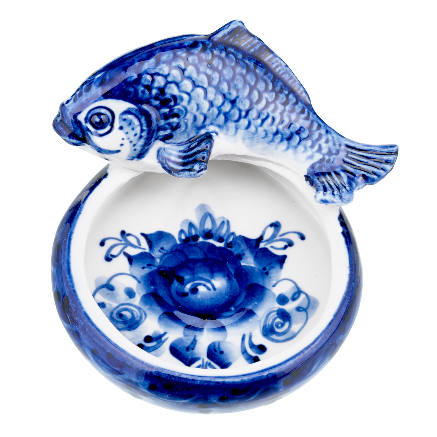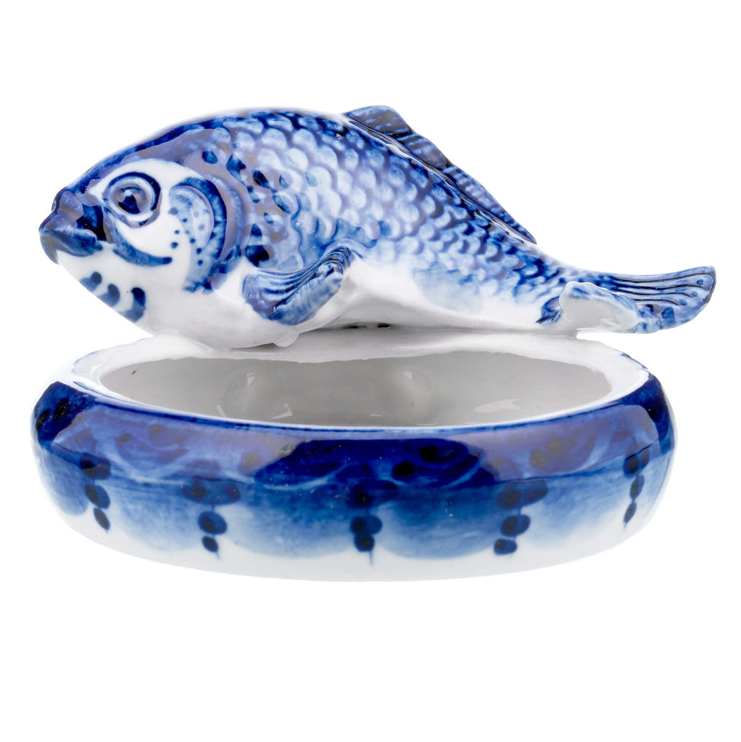Розетка фарфоровая с росписью "Рыба". Гжель