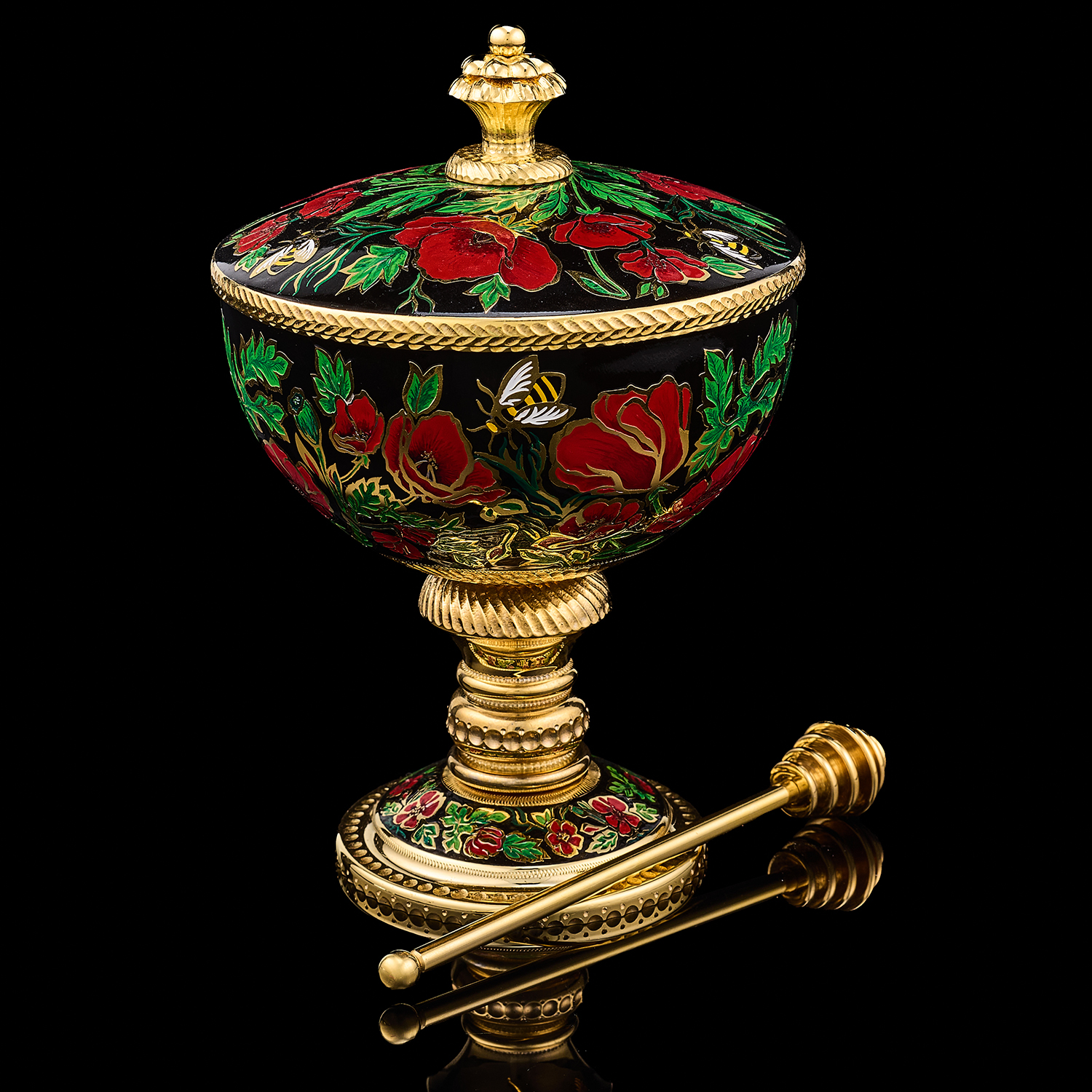 Медовница с позолотой и эмалью "Маки". Златоуст