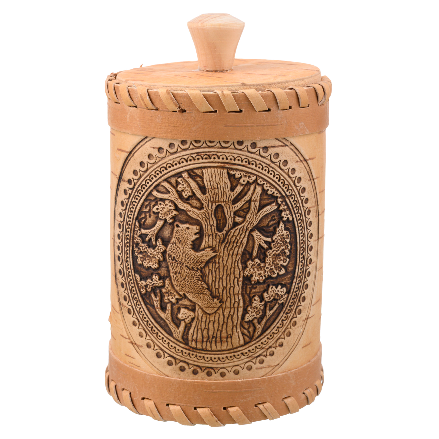 Туес для сыпучих продуктов из бересты "Медведь"