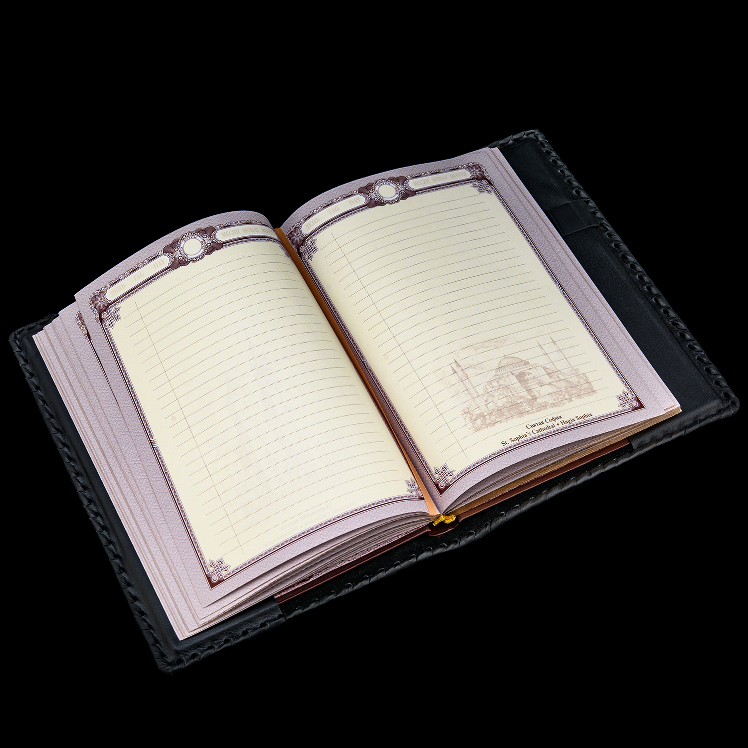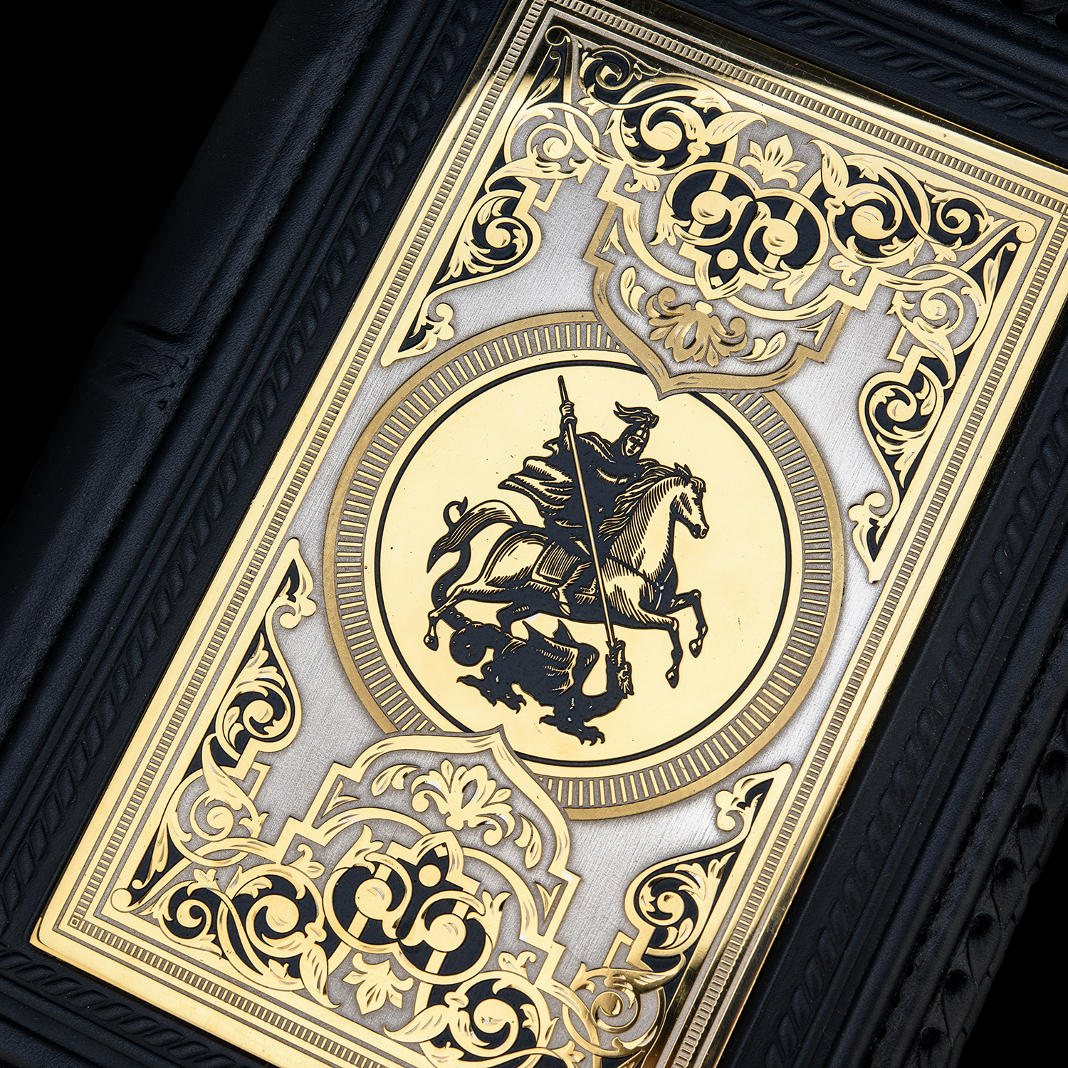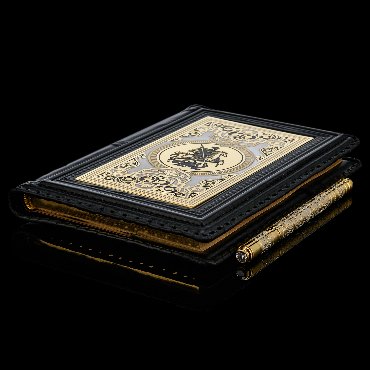 Ежедневник с ручкой "Георгий Победоносец". Златоуст.Материалы: латунь, никель, золото 999,9*, эмаль, кожа.