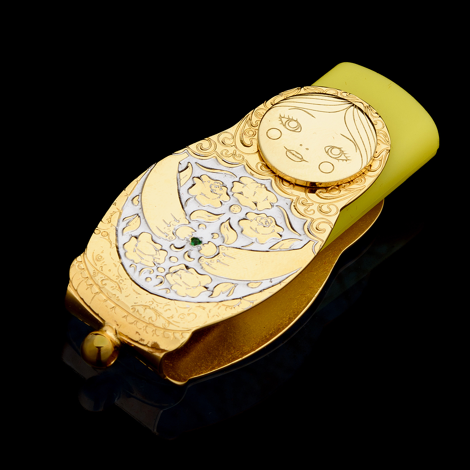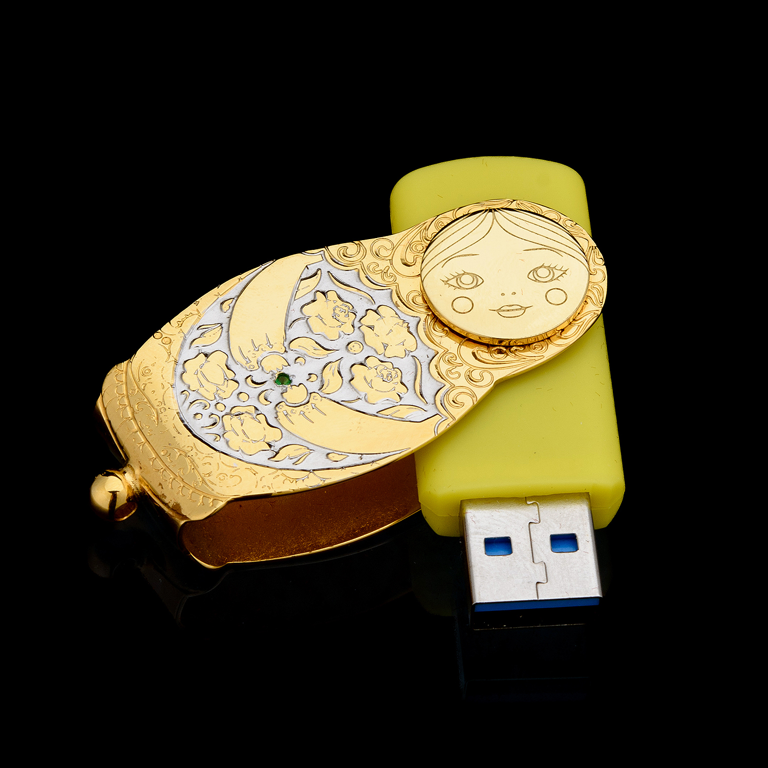 Флэшка 16 Гб "Матрешка". Златоуст.Материалы: латунь, никель, золото 999,9*, фианит.