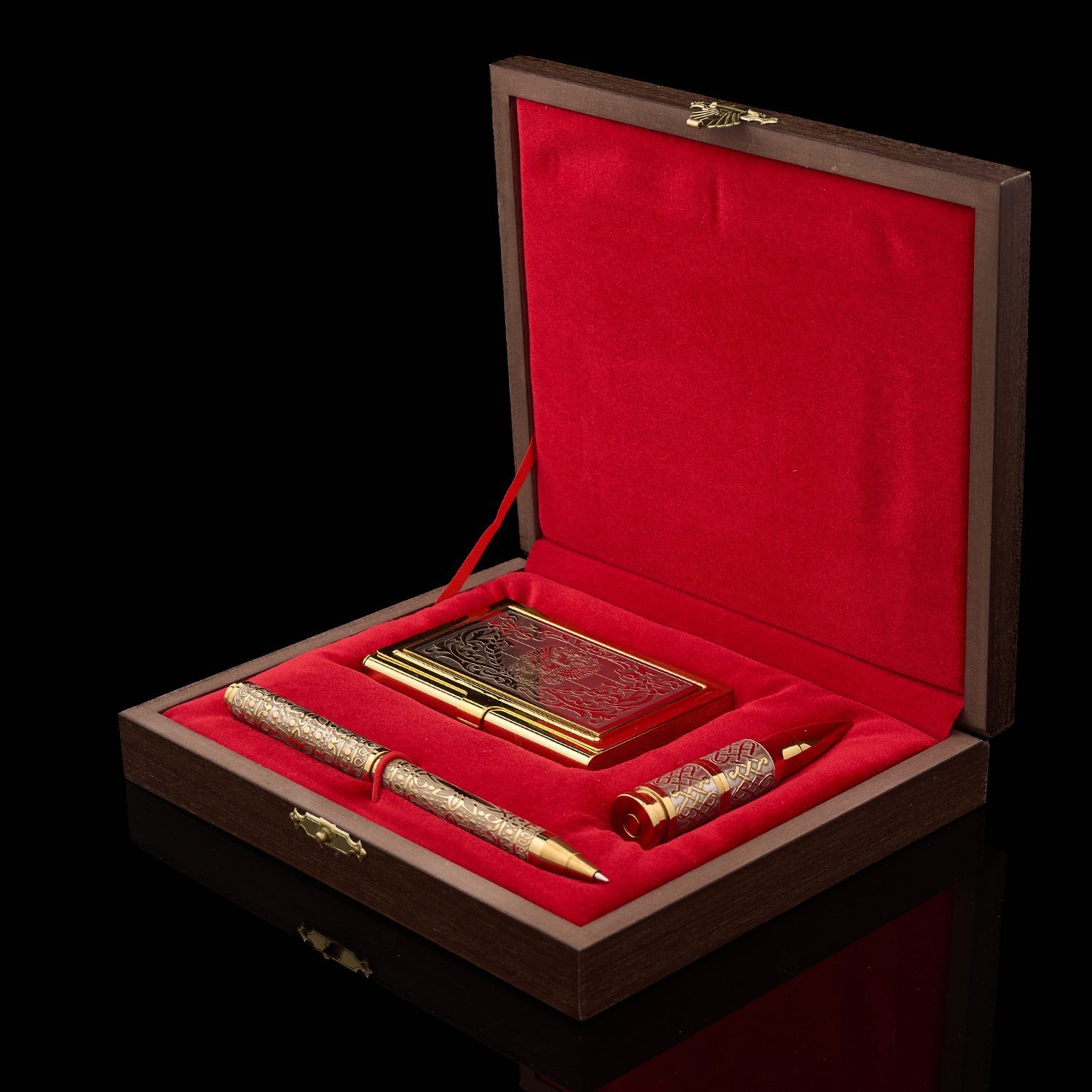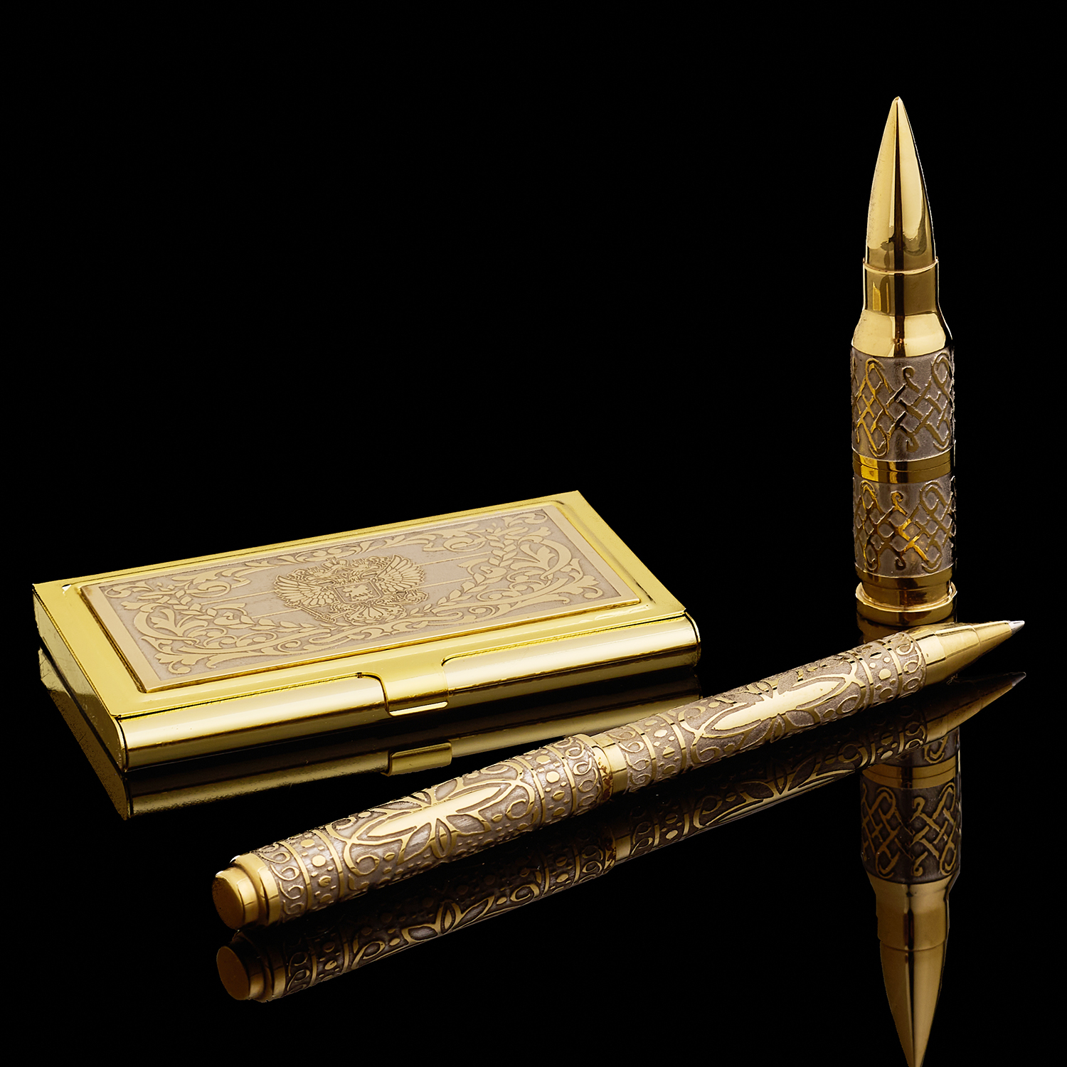 Подарочный набор с визитницей, ручкой и Usb-флешкой. Златоуст.Материалы: латунь, никель, золото 999,9*.