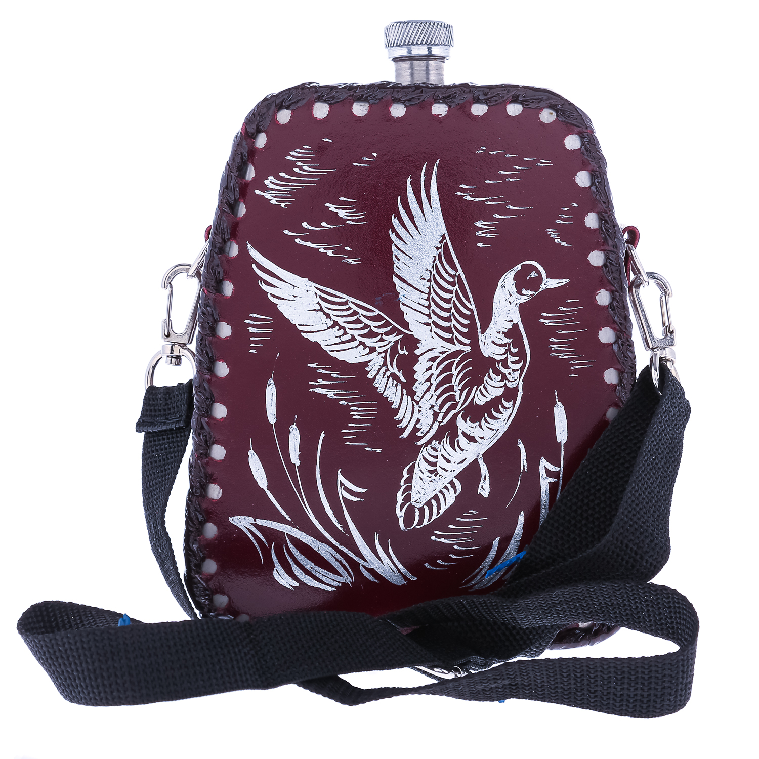 Фляга 1 л в кожаном чехле "Утка".Материалы: нержавеющая сталь, кожа.