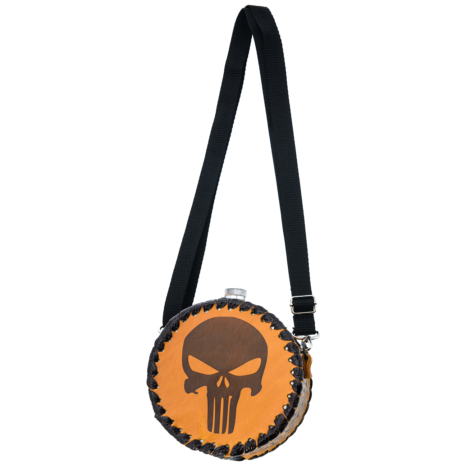 Фляга 1 л в кожаном чехле "Череп".Материалы: нержавеющая сталь, кожа.