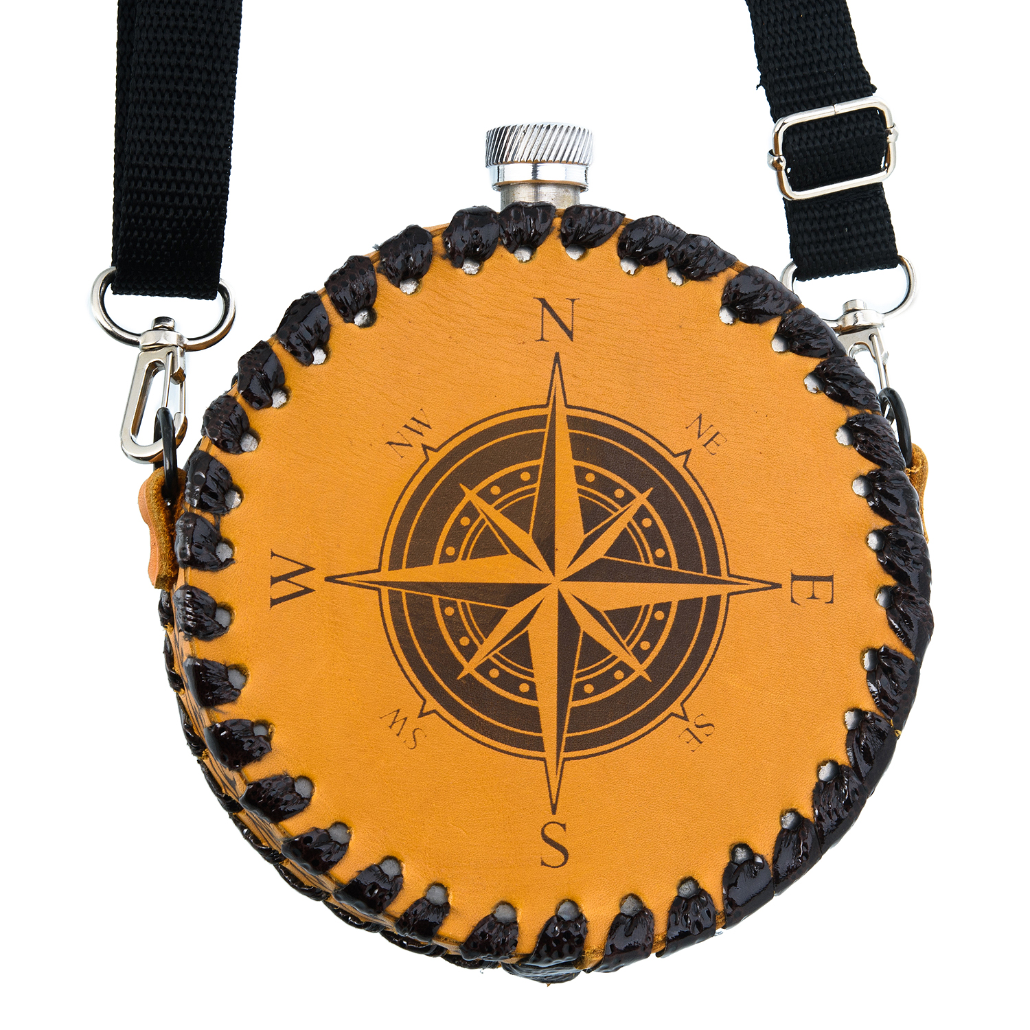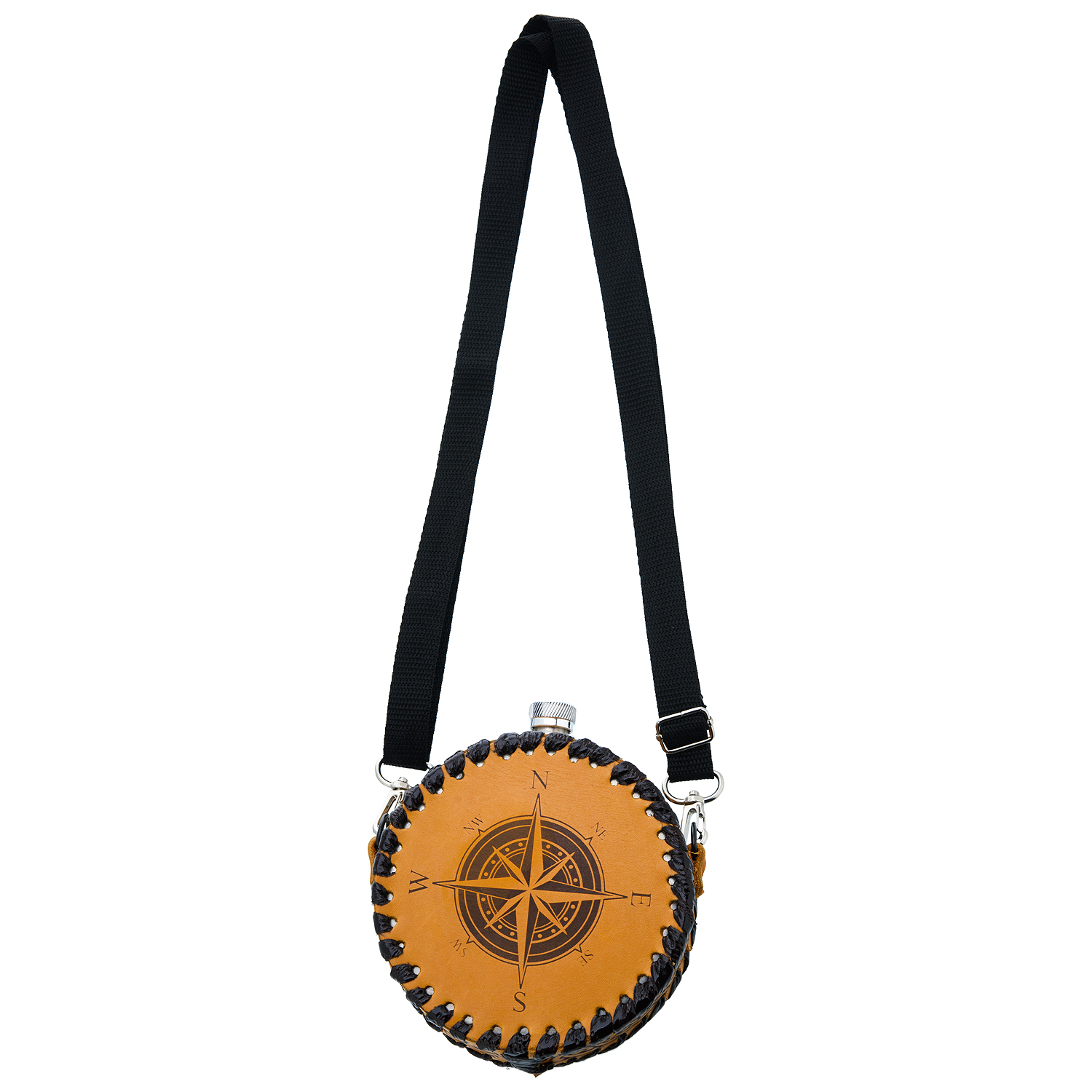 Фляга 0,5 л в кожаном чехле "Стороны света".