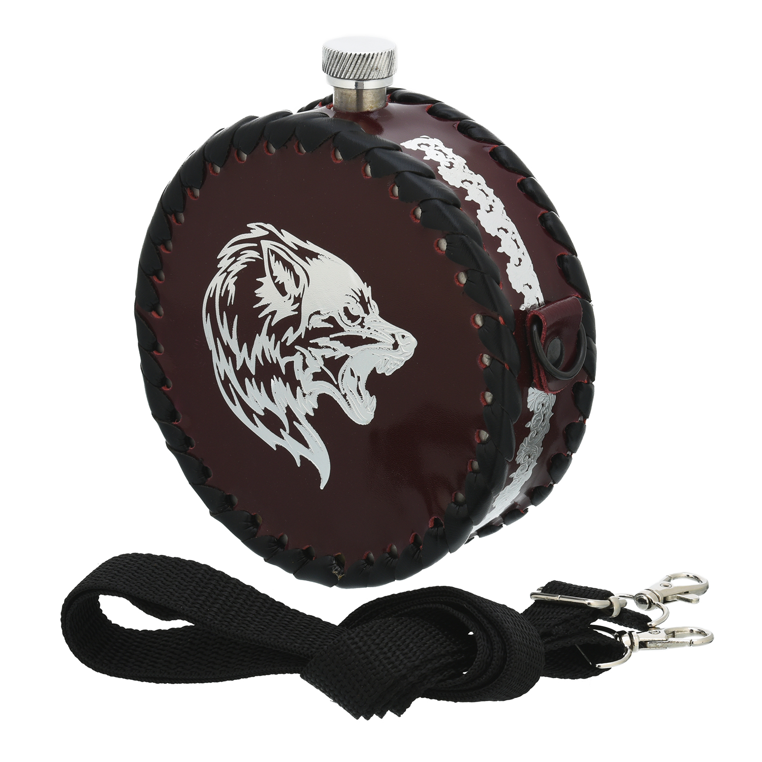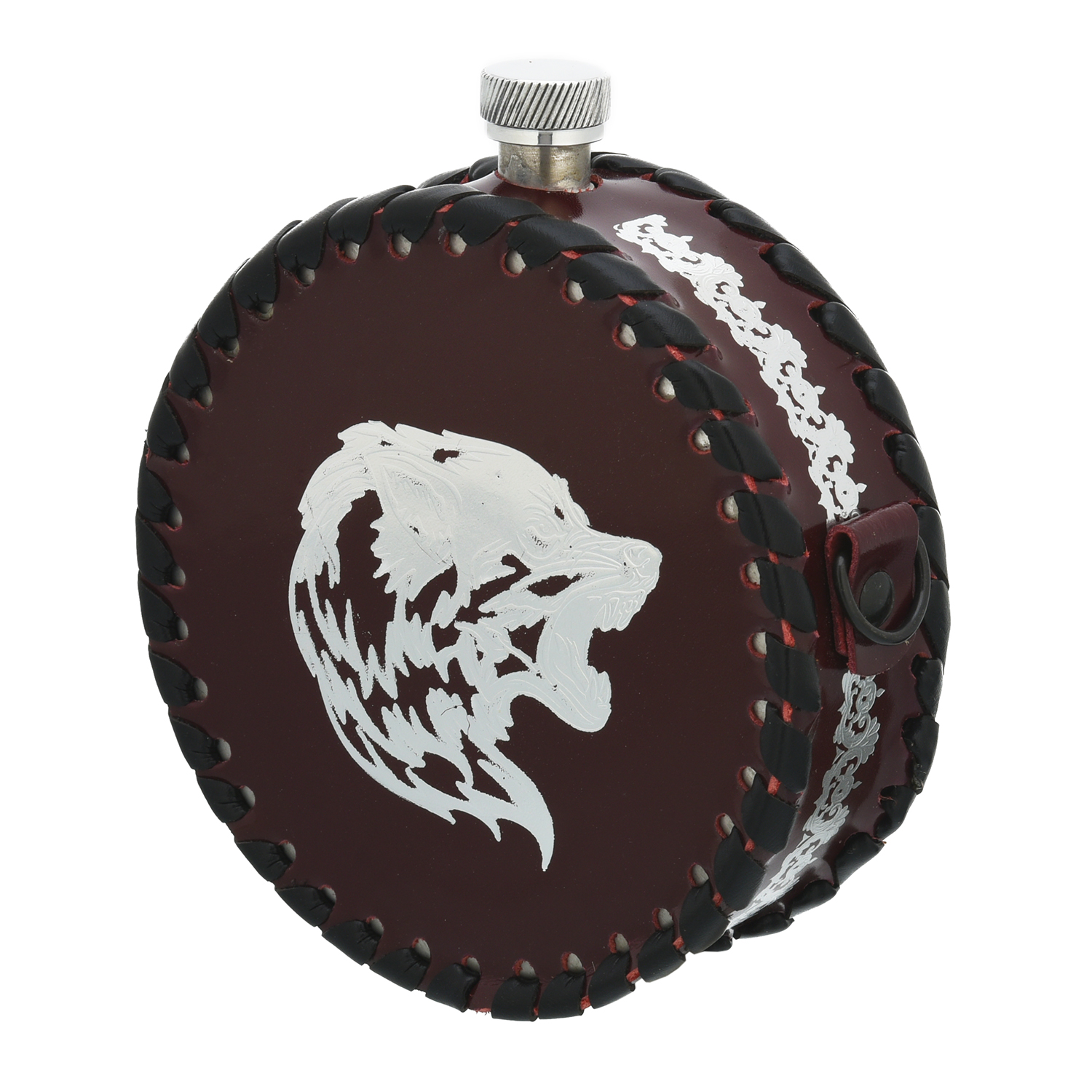 Фляга 0,5 л "Волк".Материалы: нержавеющая сталь, кожа.