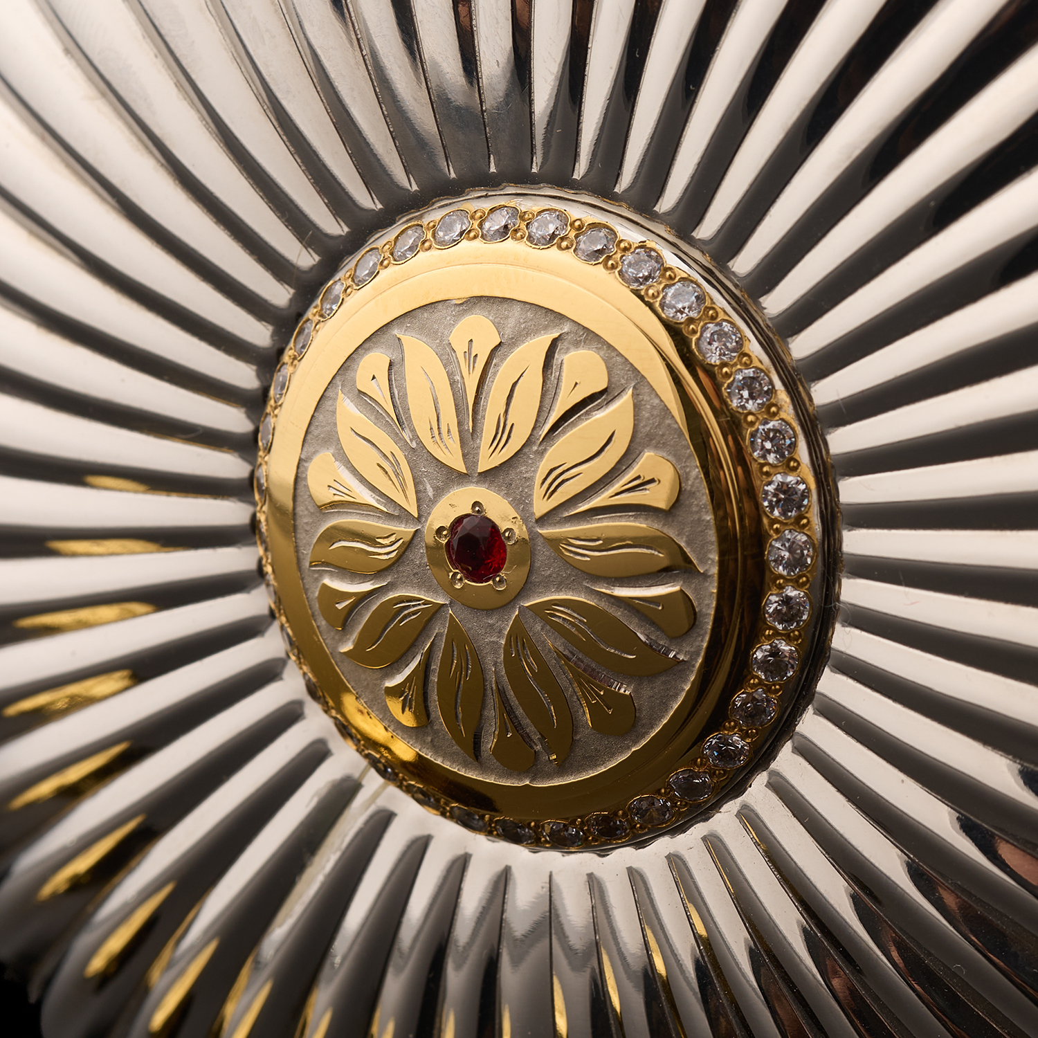 Фляга с позолотой и фианитами "Герб РФ". Златоуст.Материалы: сталь, латунь, золото 999,9*, фианиты.