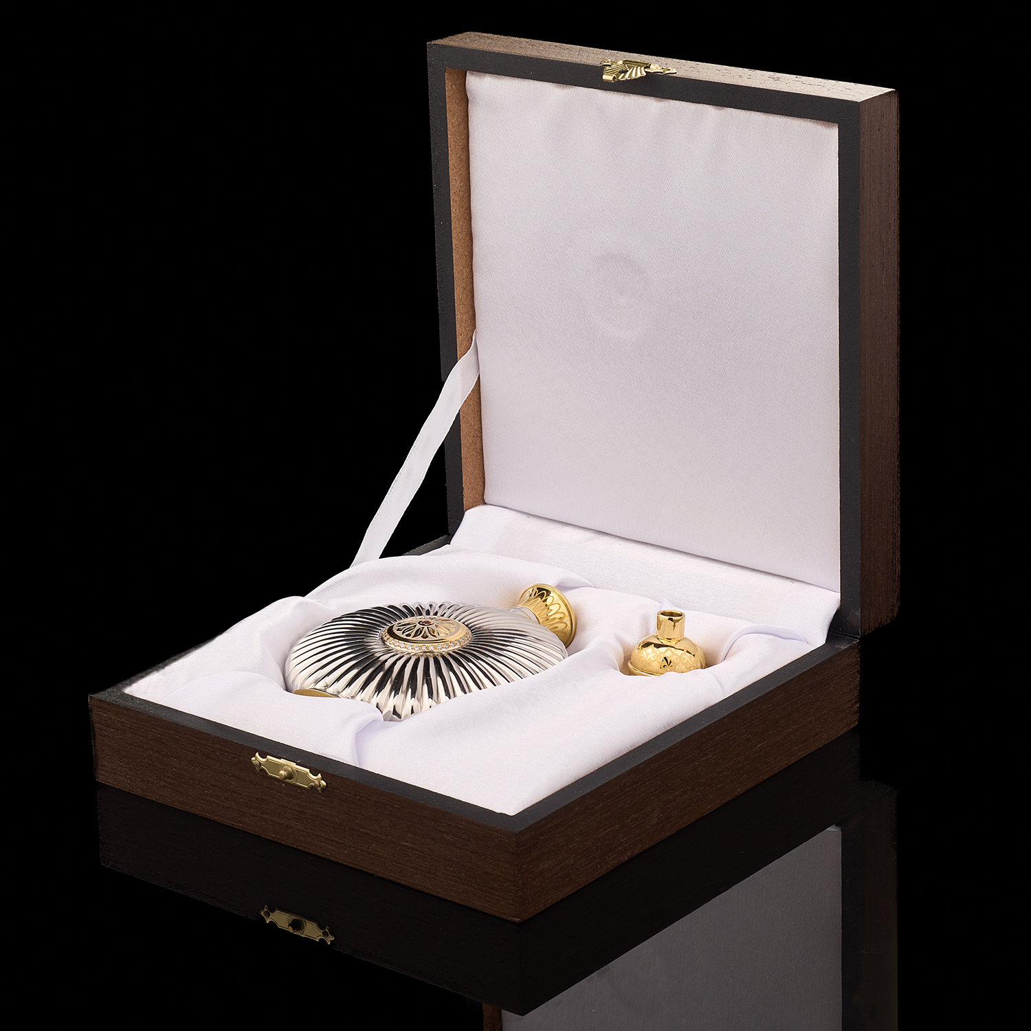 Фляга с позолотой и фианитами "Герб РФ". Златоуст
