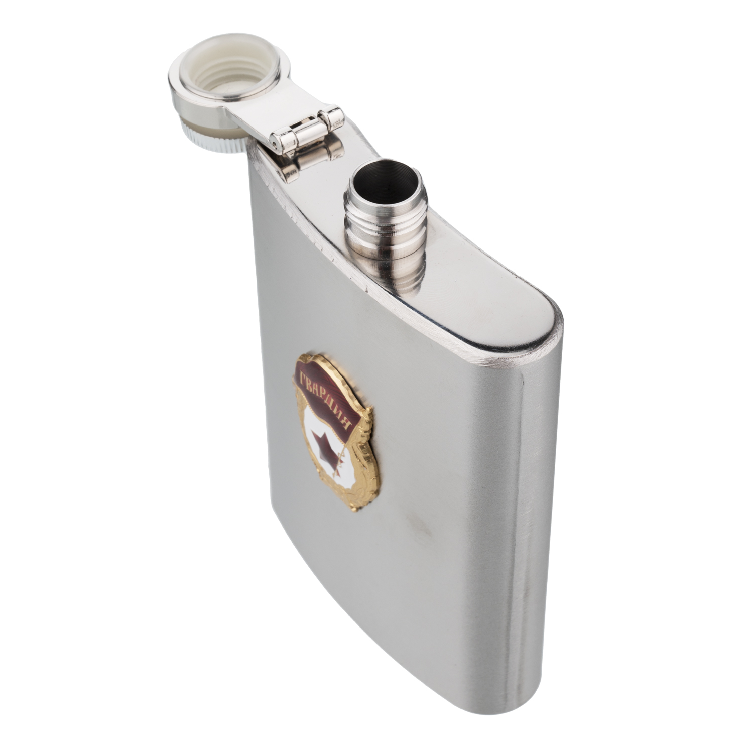 Фляга сувенирная с символикой "Гвардия".Материалы: нержавеющая сталь, латунь, эмаль.