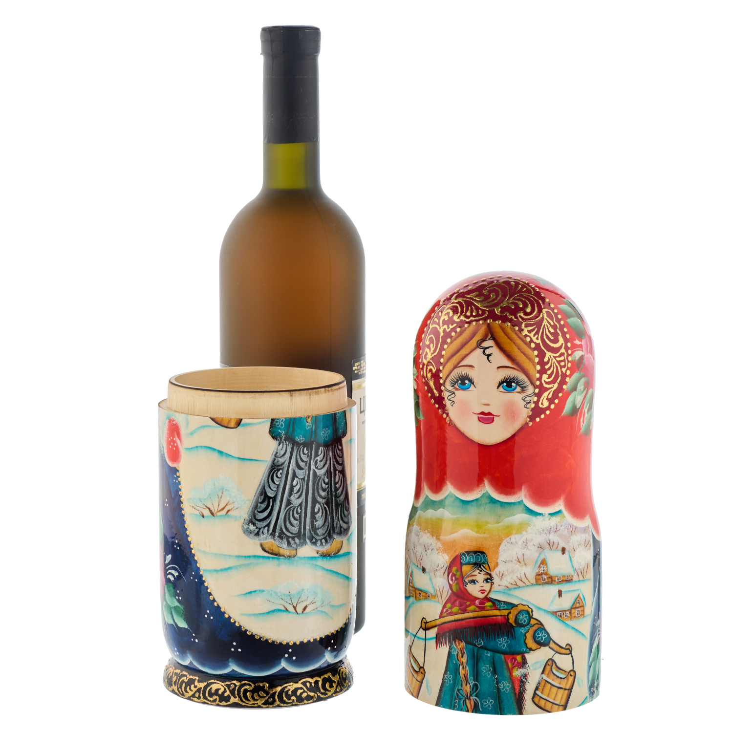Футляр для бутылки "По воду".Материалы: дерево, краски, лак.