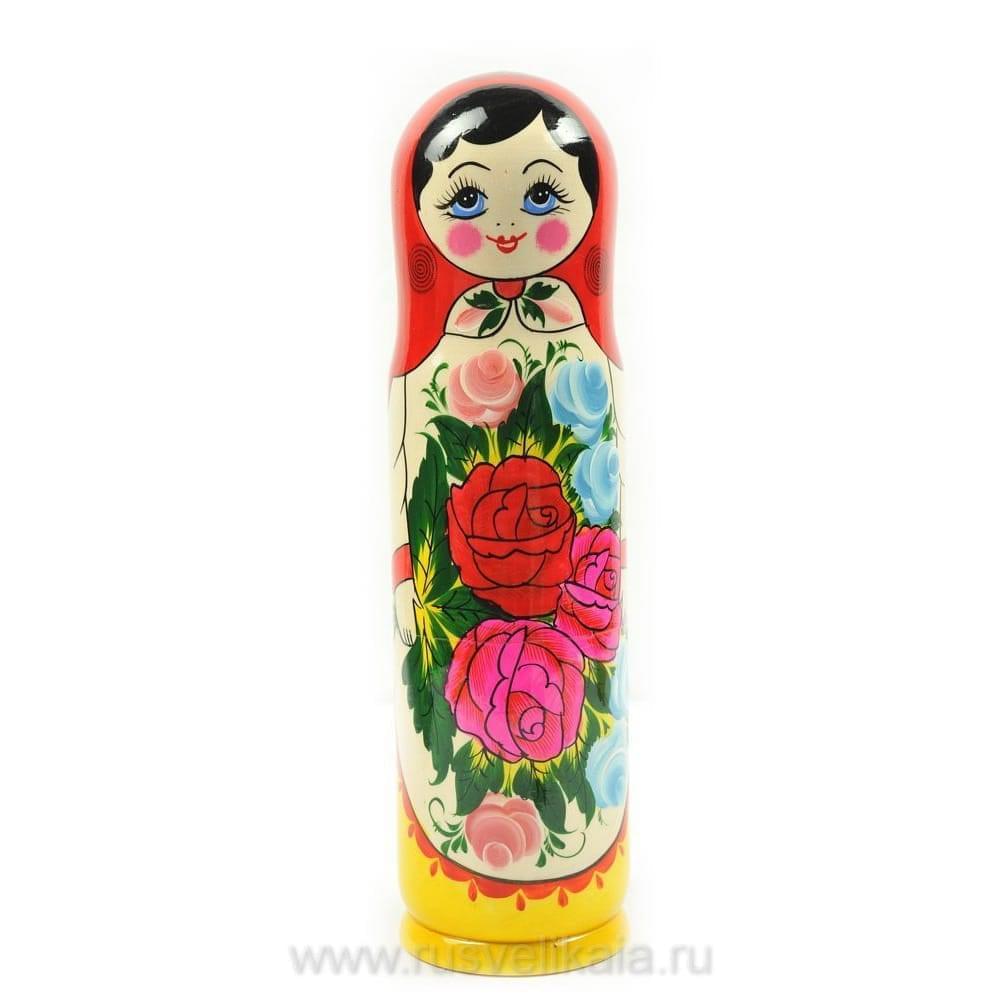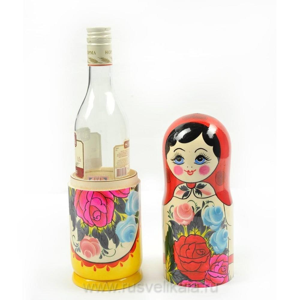 Изделие с росписью нижегородских мастеров украсит праздничный стол, а также может быть хорошим сувениром для иностранного друга. Авторская работа, футляр для бутылки в виде матрёшки 0,5 л. - это универсальный вариант мужского подарка (вместе с бутылкой) для почитателя алкоголя, коллеги, гостя России на Новый год, общий или личный, в том числе профессиональный праздник.