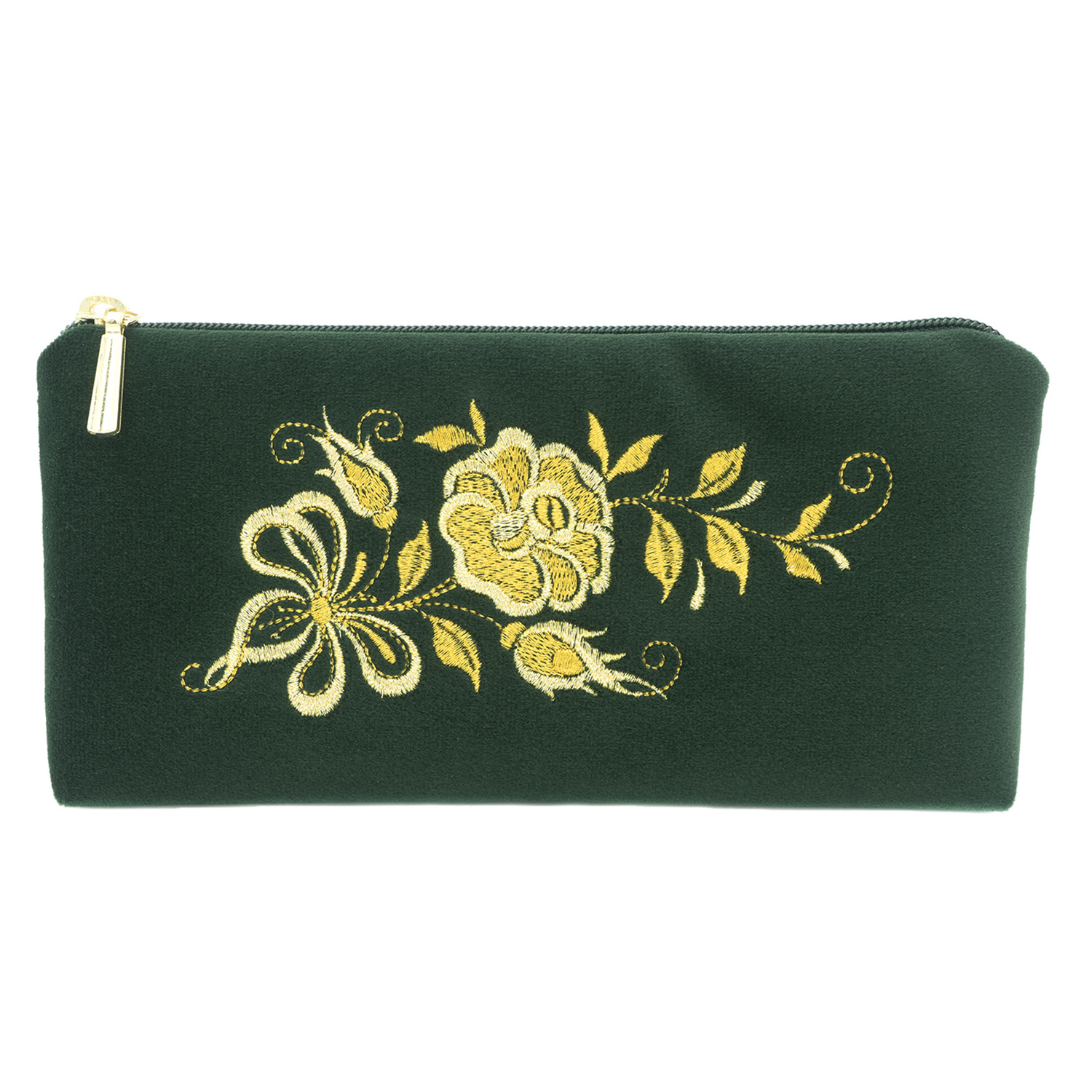 Очечник бархатный с вышивкой "Чайная роза". Темно-зеленый