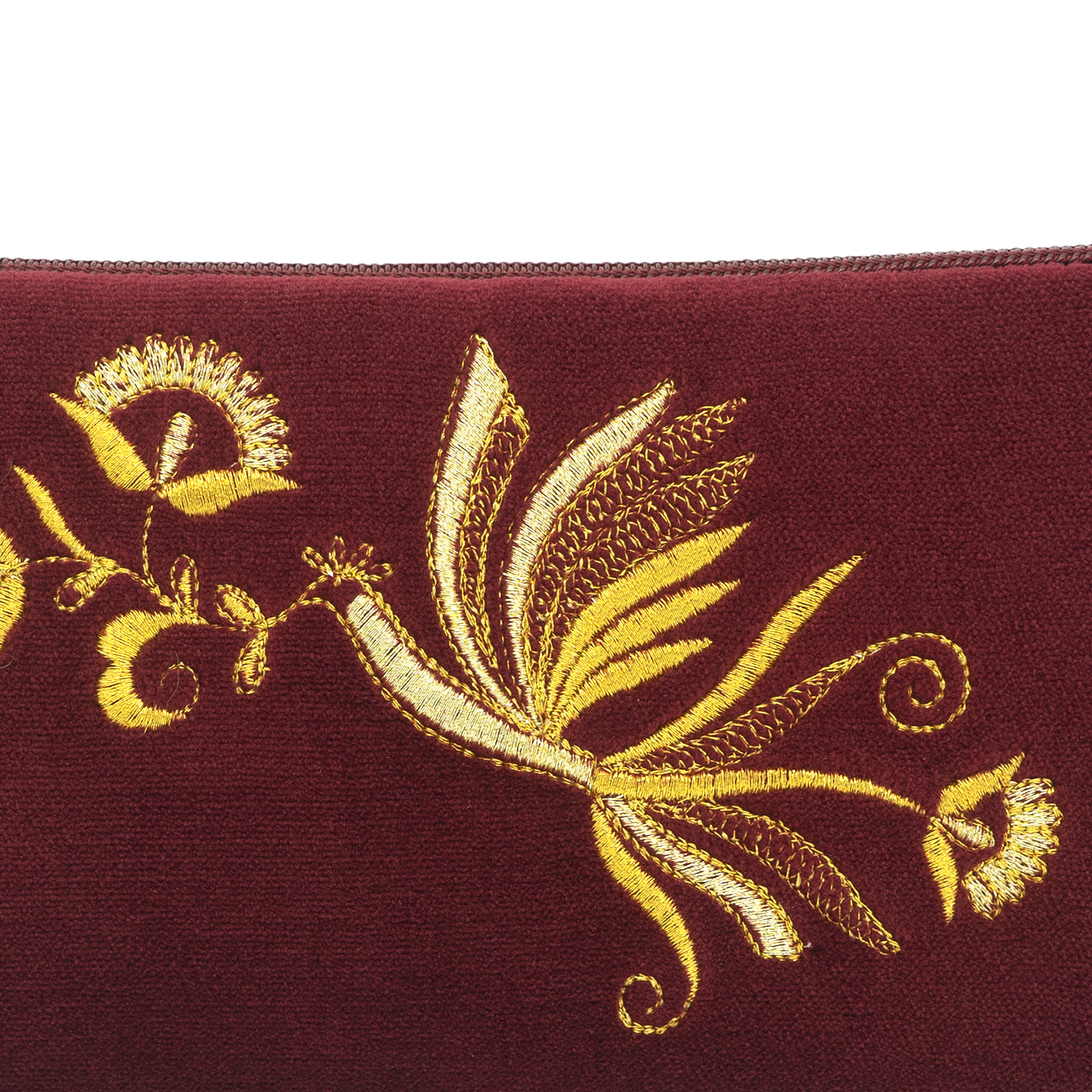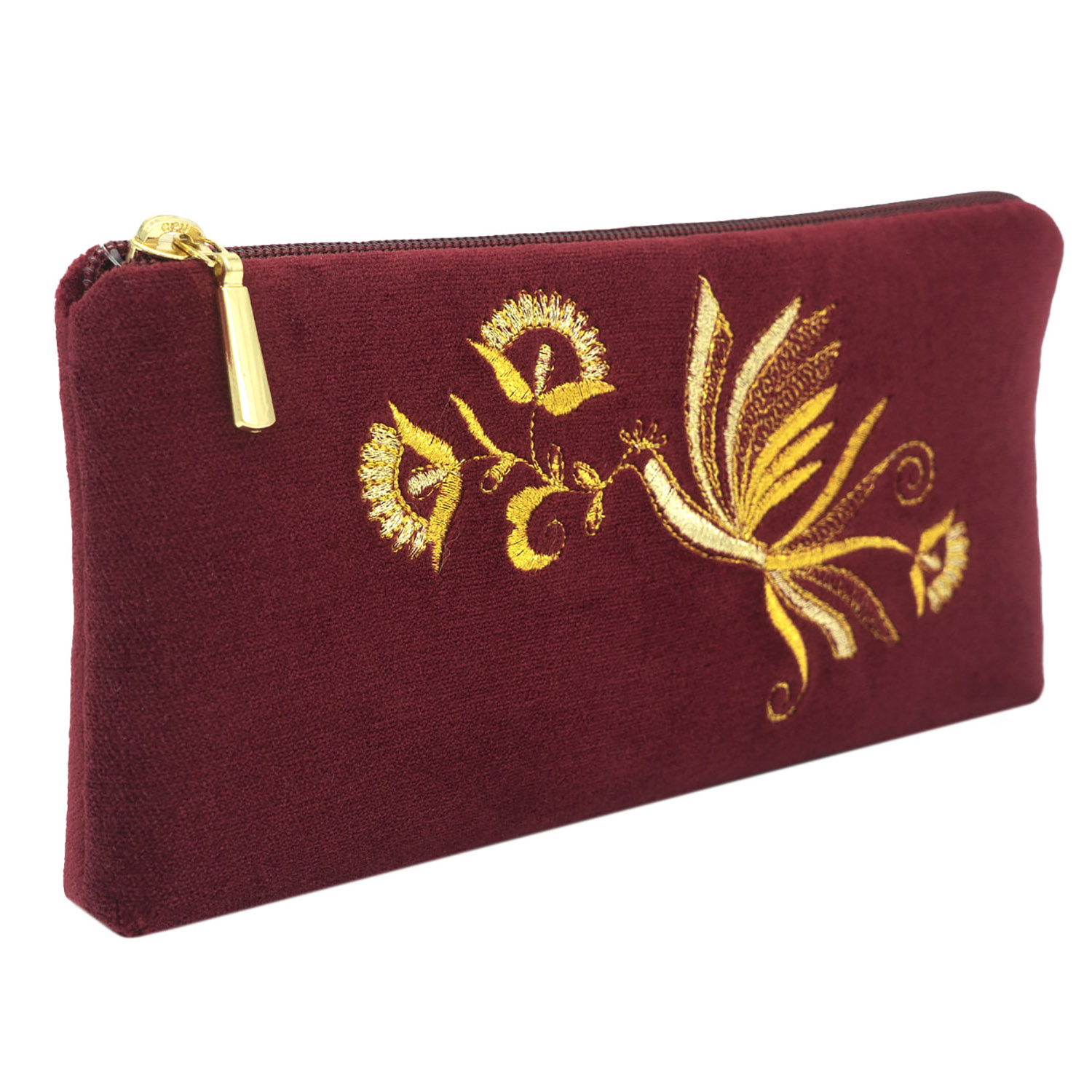 Очечник бархатный с вышивкой "Птица". Бордовый