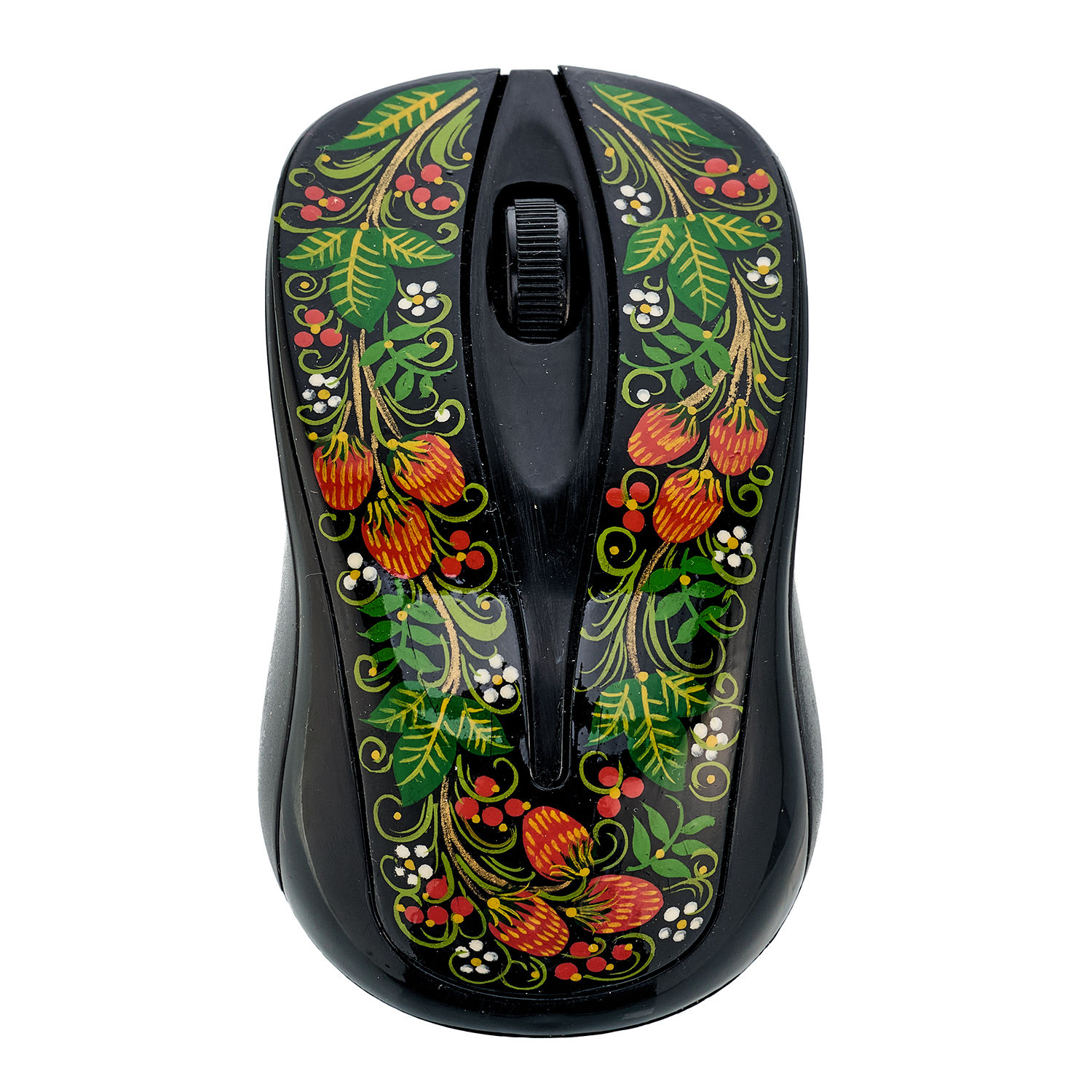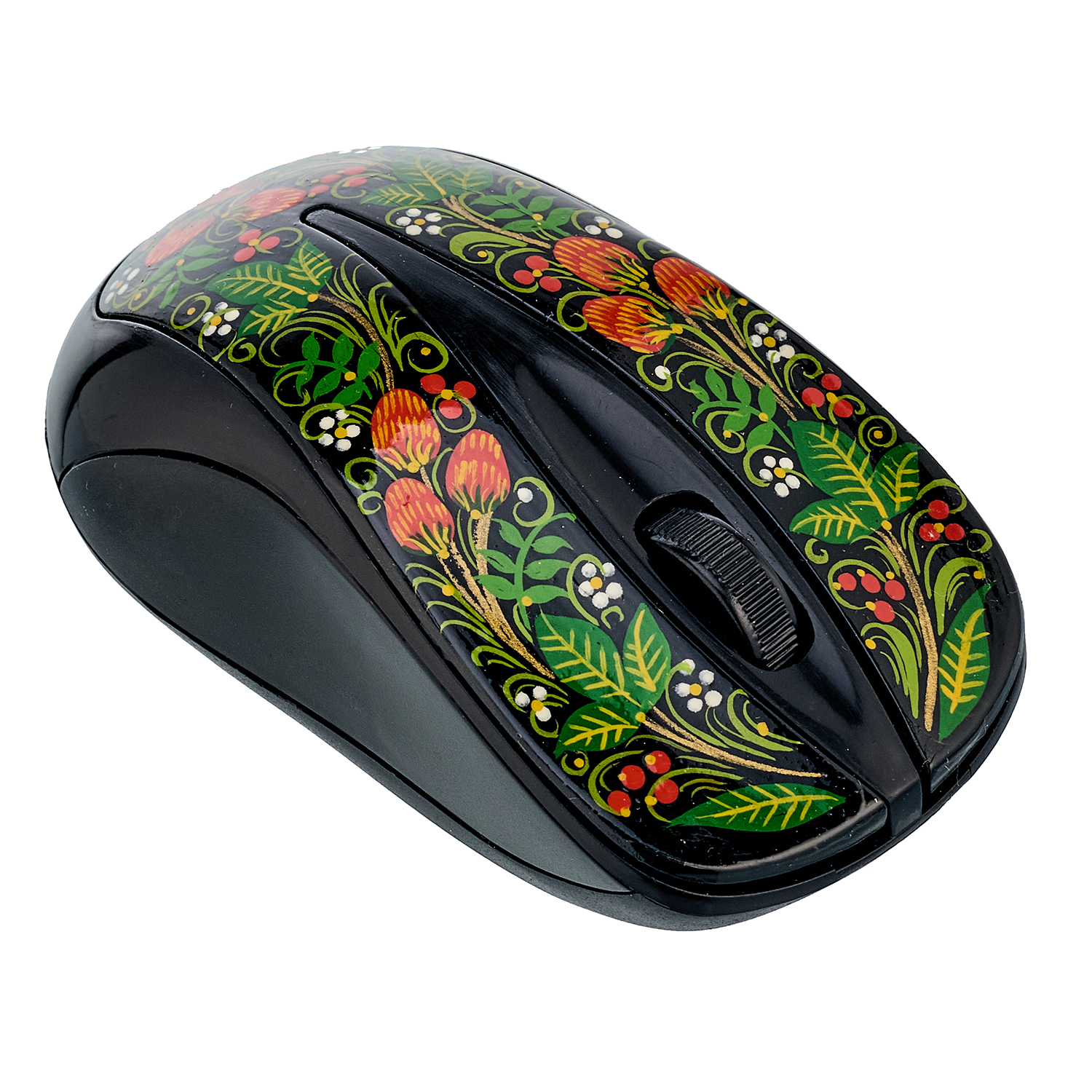 Беспроводная компьютерная мышь с росписью. Хохлома