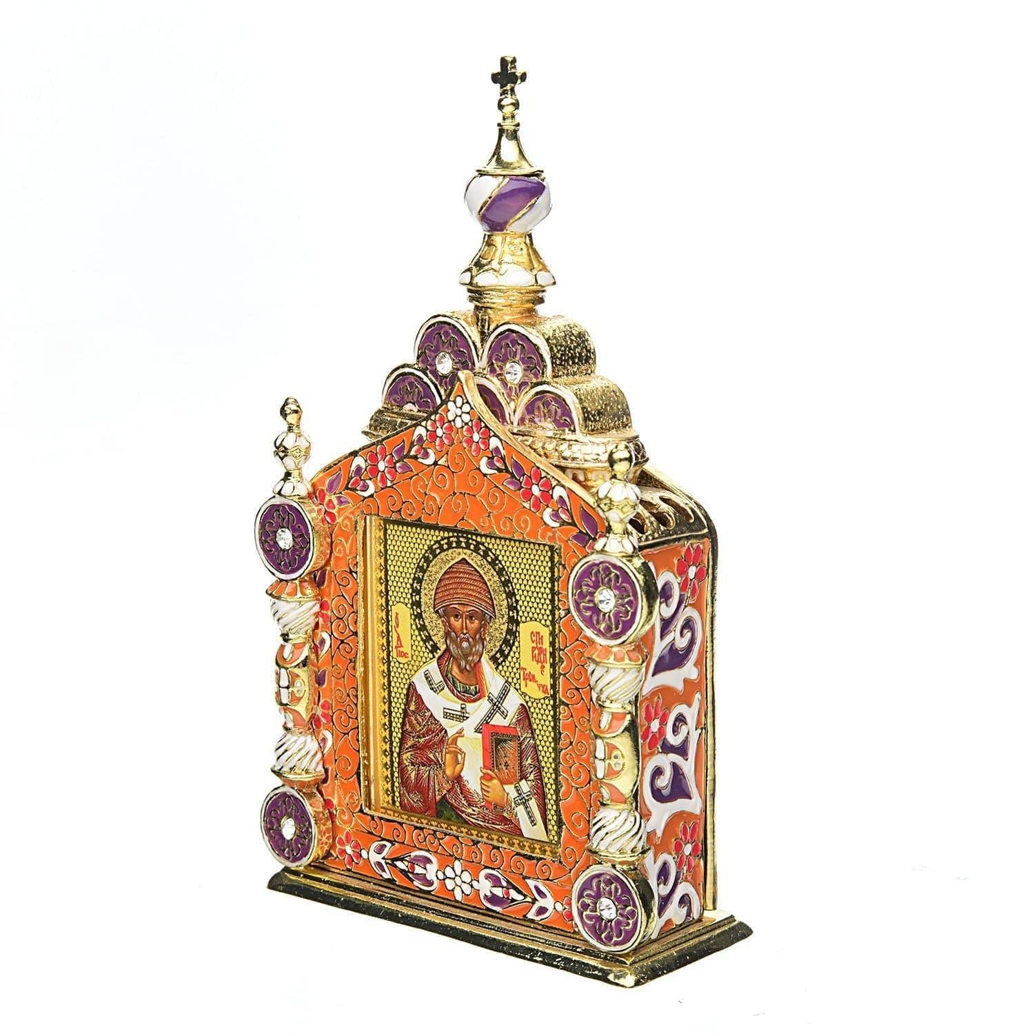 Киот малый "Спиридон Тримифунтский". Традиции Фаберже 8 х 13 см