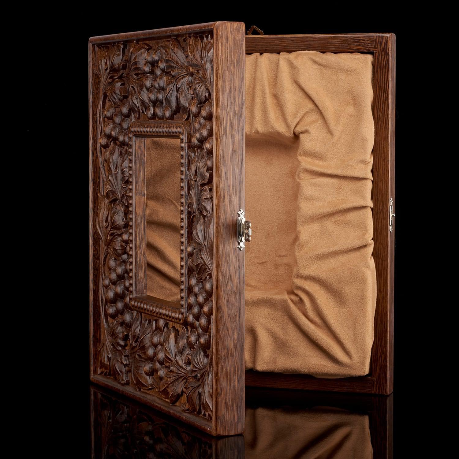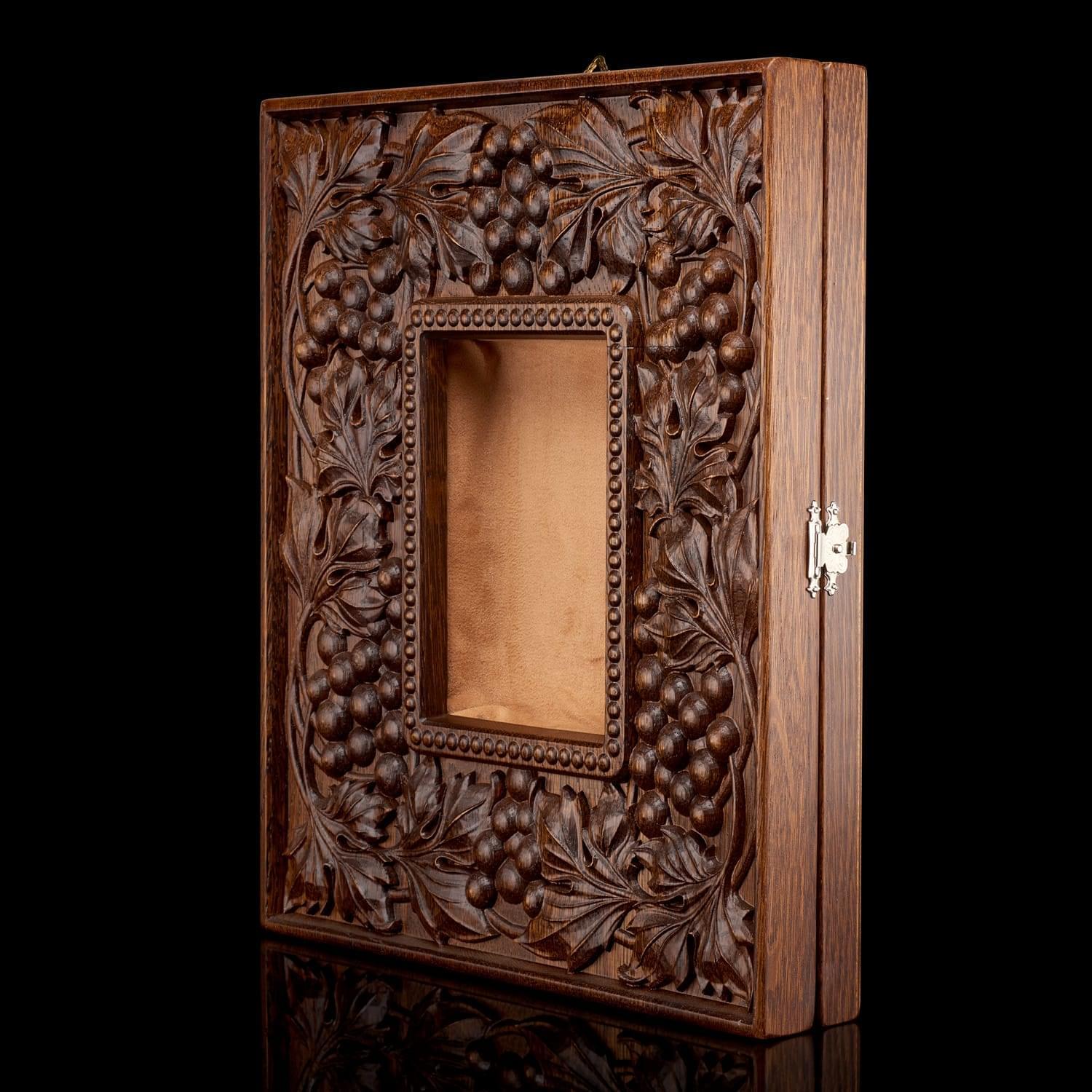 Русские подарки и сувениры → Религиозные подарки → Иконы → Киот настольный резной из мореного дуба 26 х 32 см
