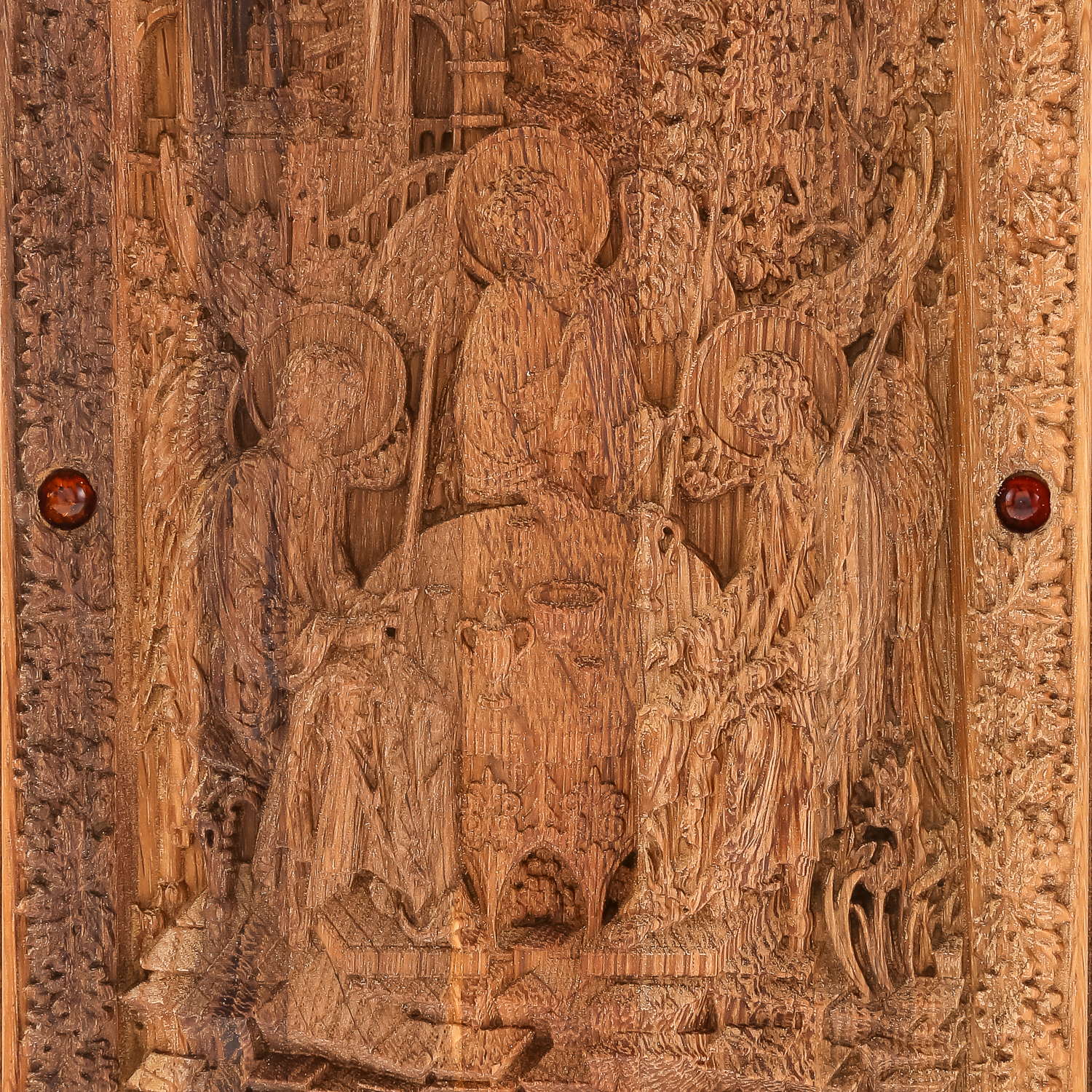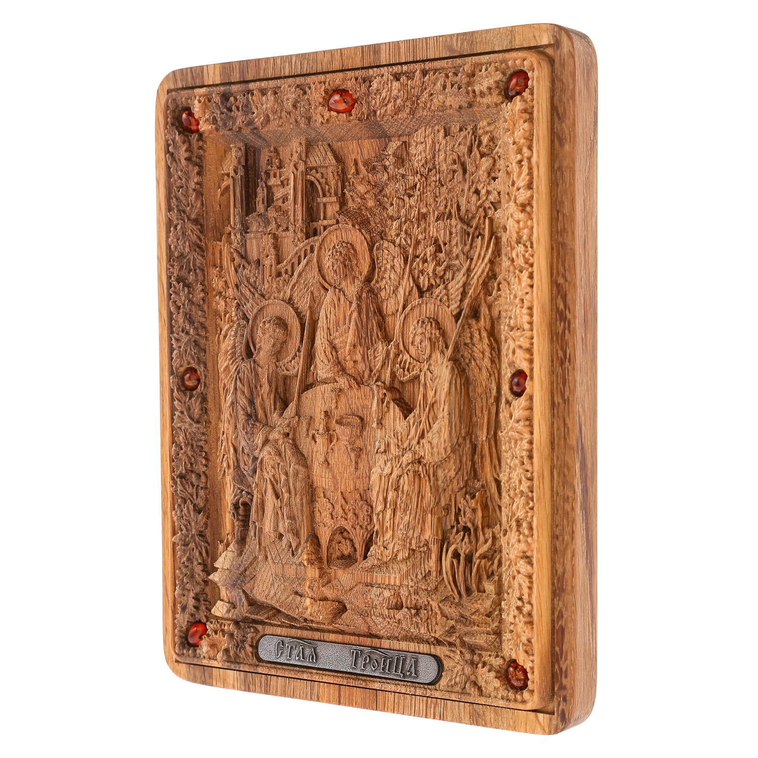 Икона из мореного дуба в киоте "Святая Троица" 26х21 см